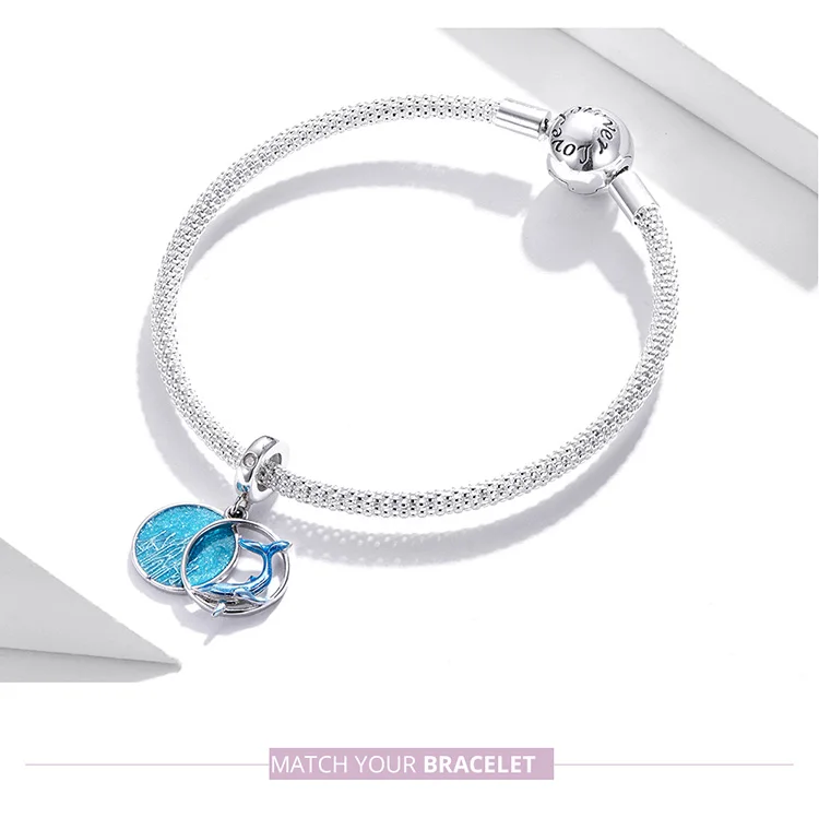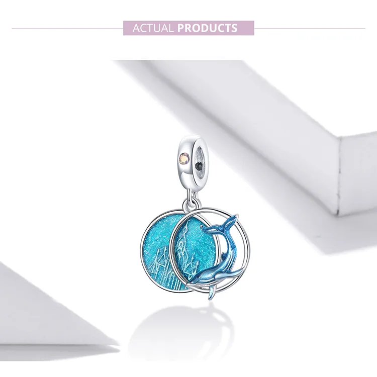 Bamoer 925 Стерлинговое Серебро Эмаль Подводные Киты Синий океан Шарм Подвеска для оригинального браслета браслет женское ювелирное изделие BSC434