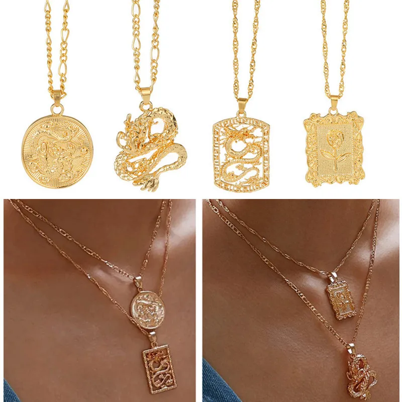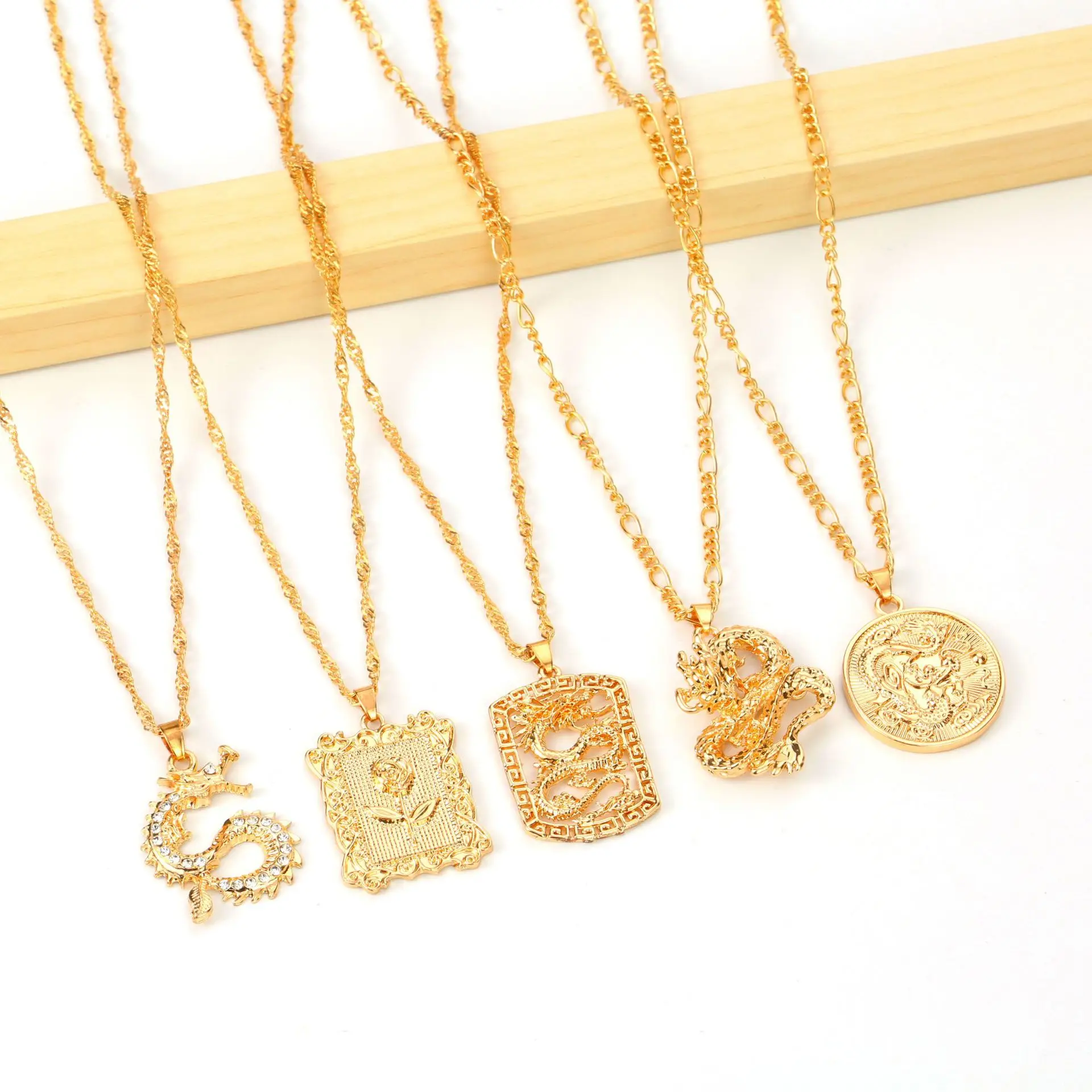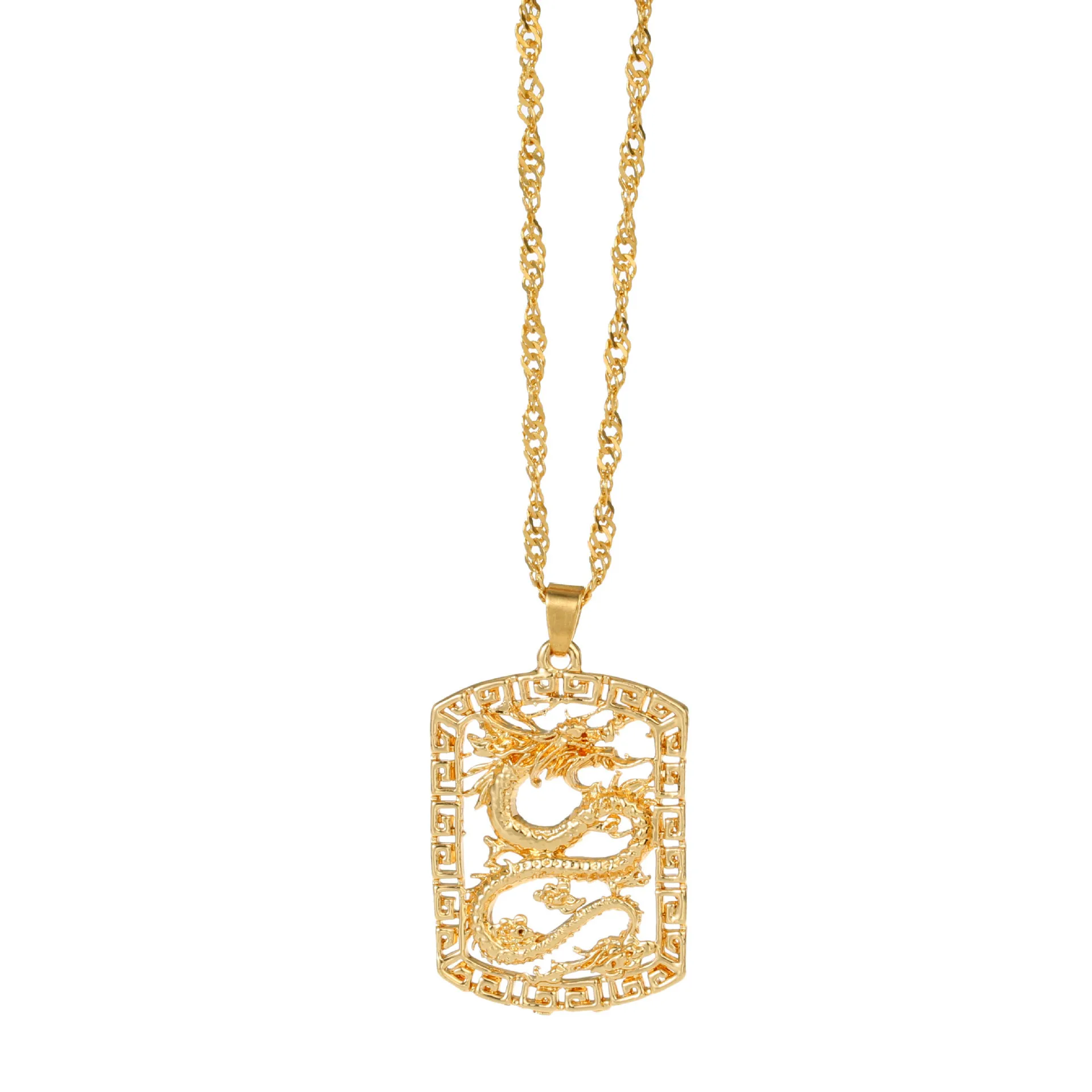 Модное ожерелье с подвеской в виде дракона для женщин и мужчин, винтажное ожерелье с цепочкой в виде Розы золотого цвета, украшения-талисманы, ювелирные изделия в подарок