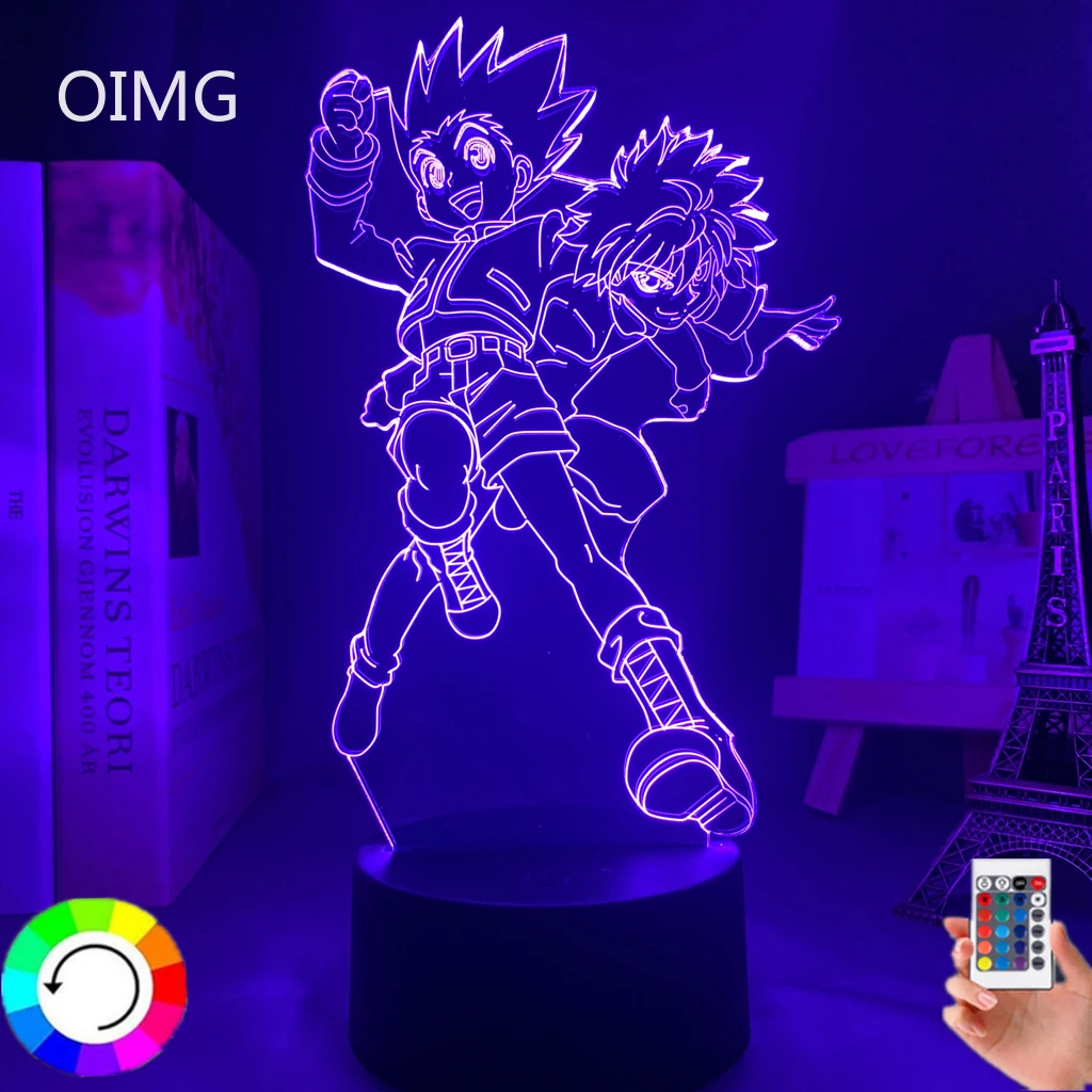 Акриловая аниме 3d лампа Hunter X Hunter Killua и Gon для спальни Декор Светильник подарок на день рождения светодиодный ночсветильник манга Hxh Killua