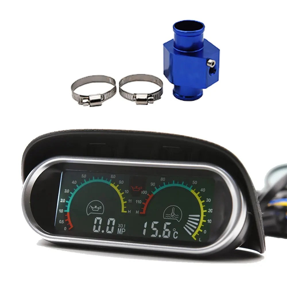 2 в 1 датчик давления масла + Датчик температуры воды ЖК-дисплей цифровой 1/8 NPT датчик 10 мм с адаптером универсальный грузовик, автомобиль, мотоцикл