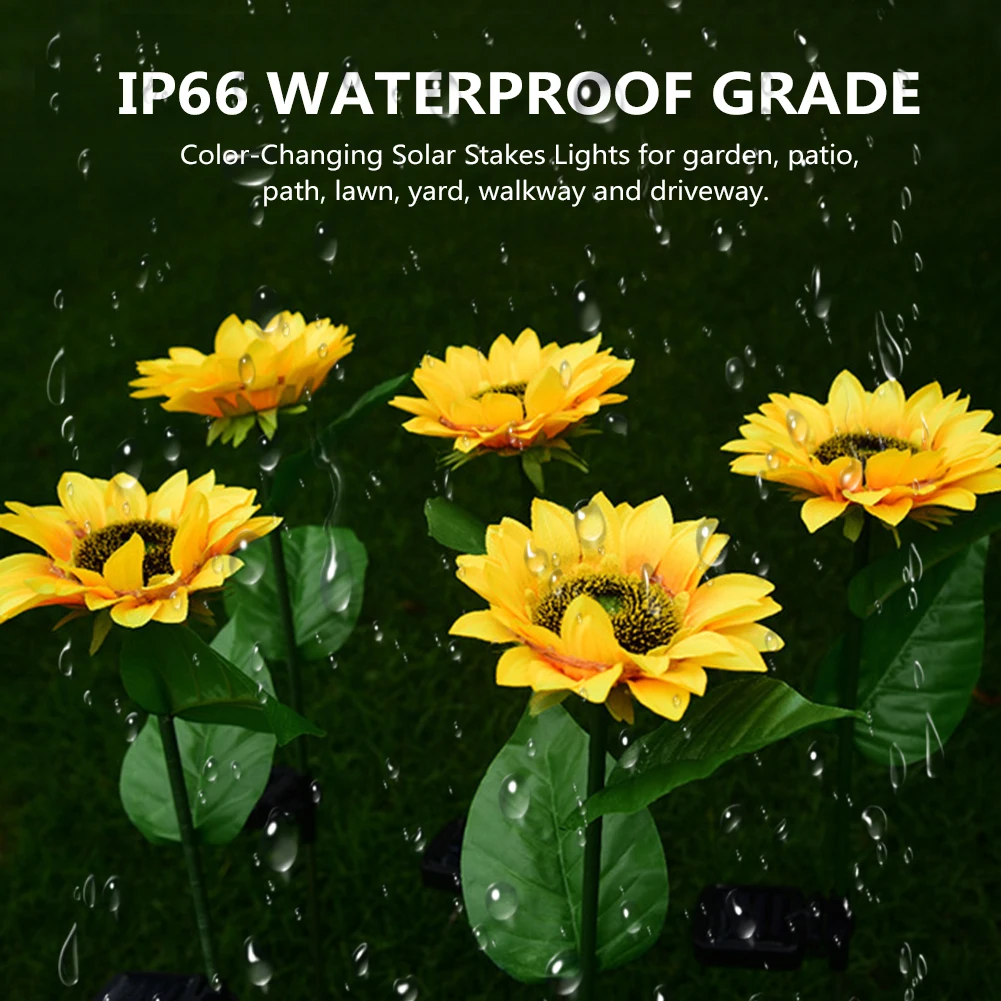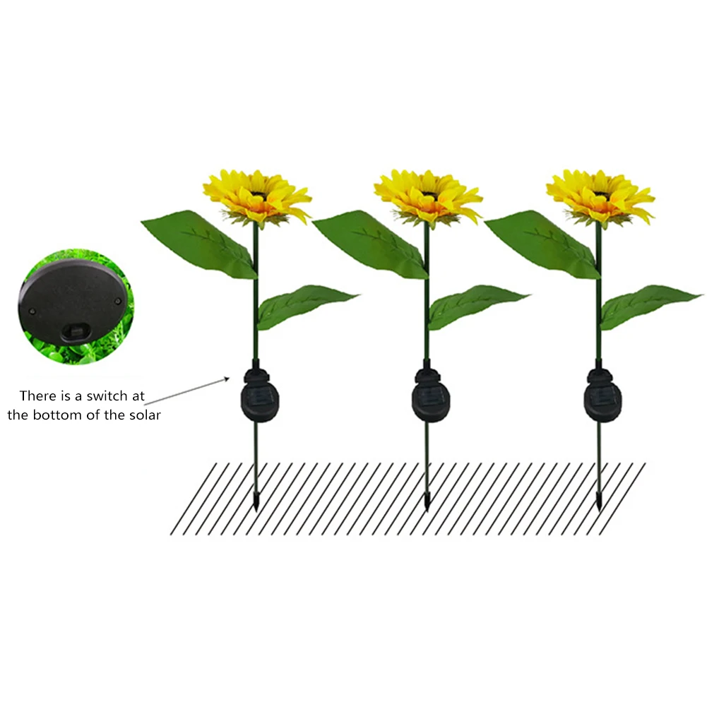 2 шт. светодиодный светильник для подсолнуха на открытом воздухе, водостойкие цветы, лужайка, лампа для двора, сада, солнечного света, светодиодный светильник для подсолнуха