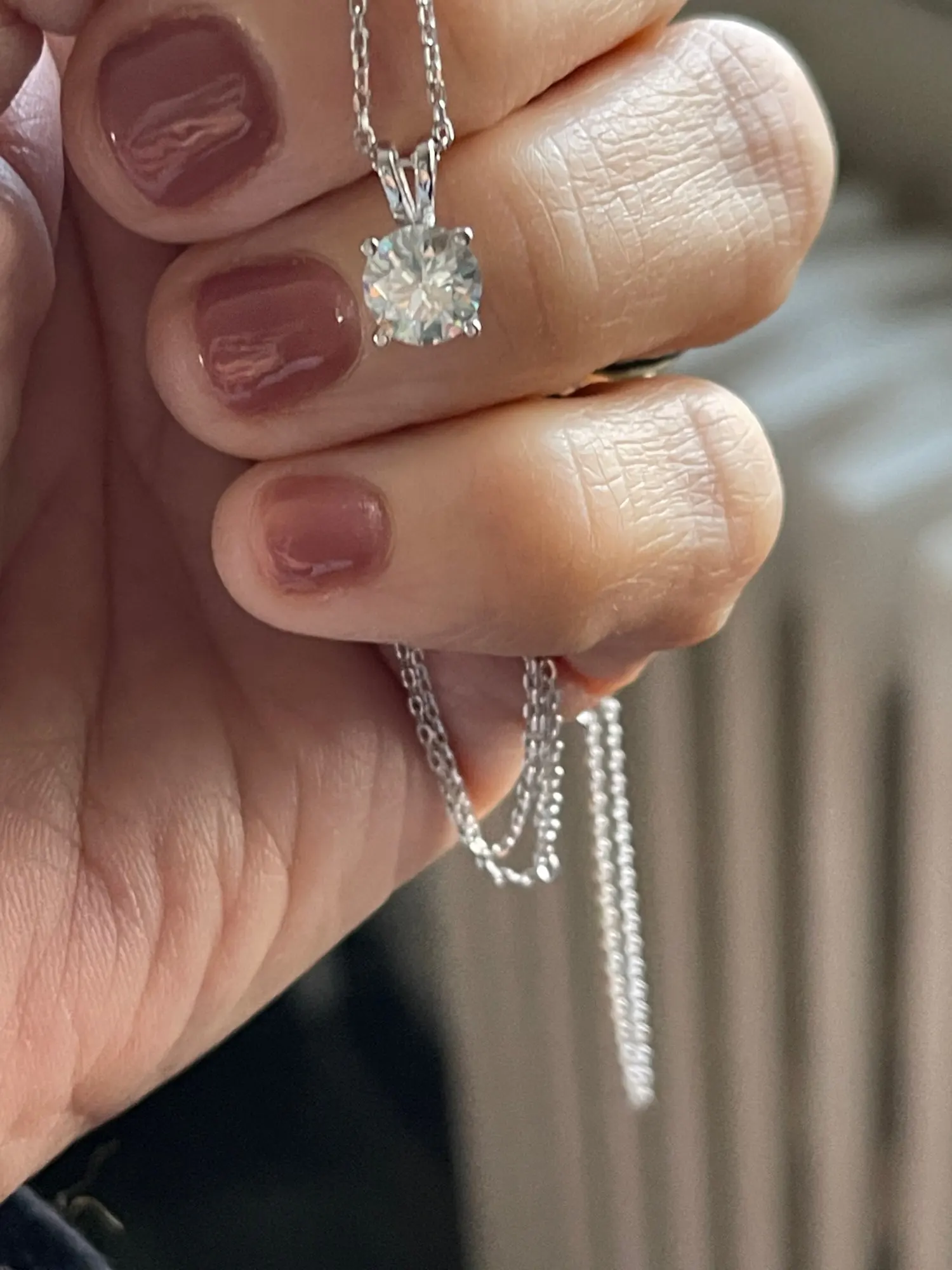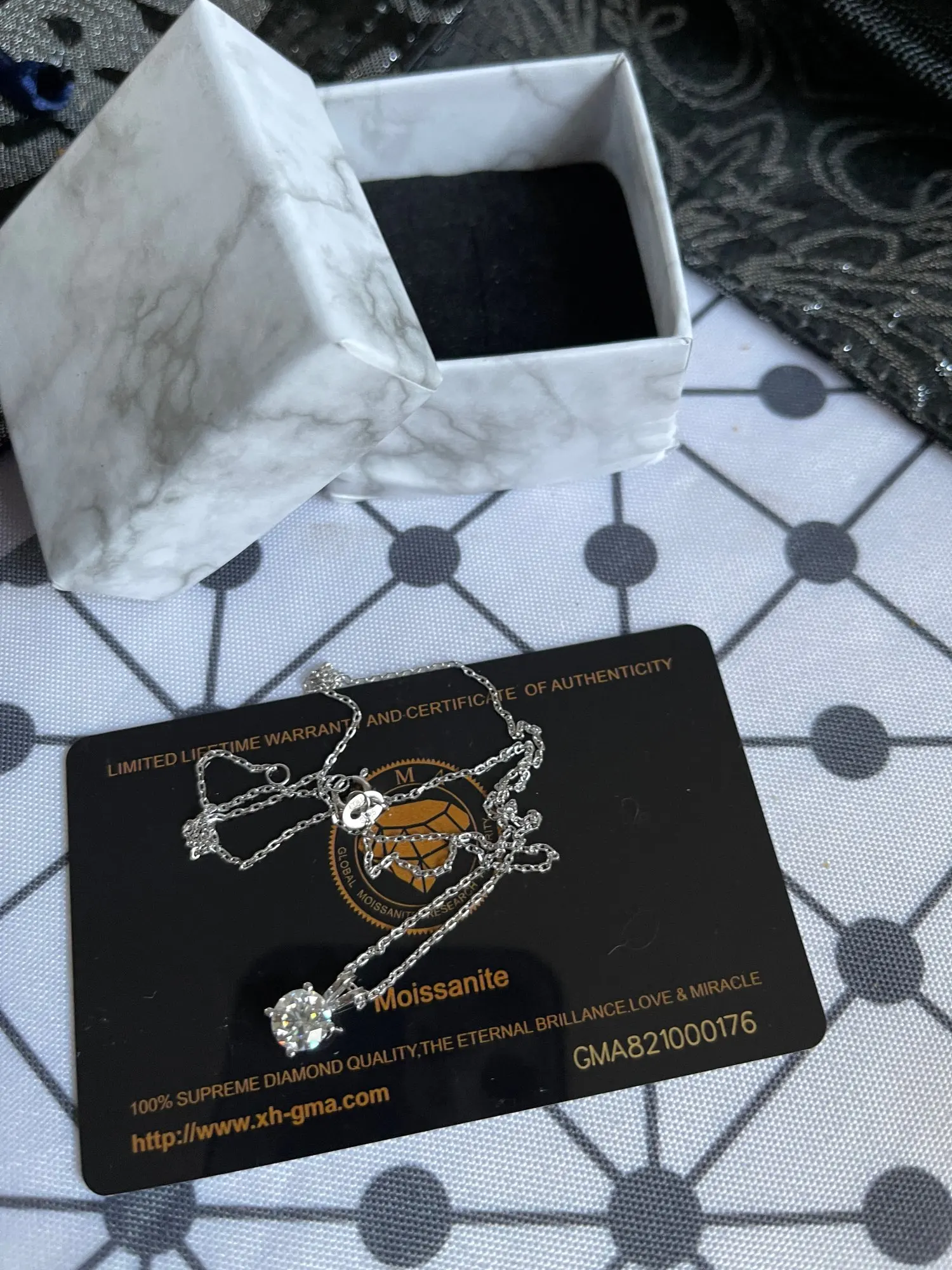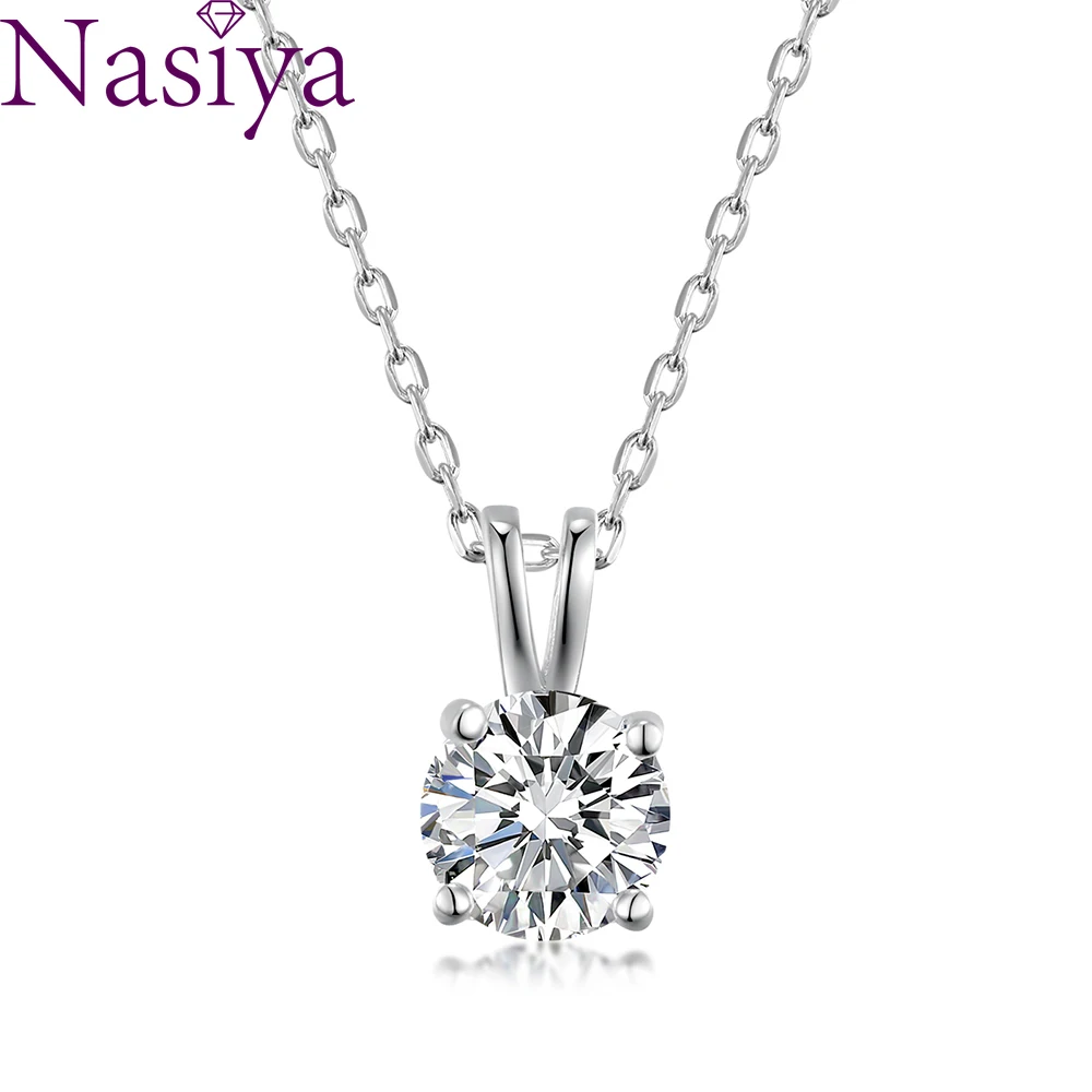 1ct 6,5 мм Круглый покрытием 18-ти каратным белым золотом, 925 серебро Муассанит Цепочки и ожерелья с бриллиантами Тесты прошел, серебряная цепочка с Цепочки и ожерелья