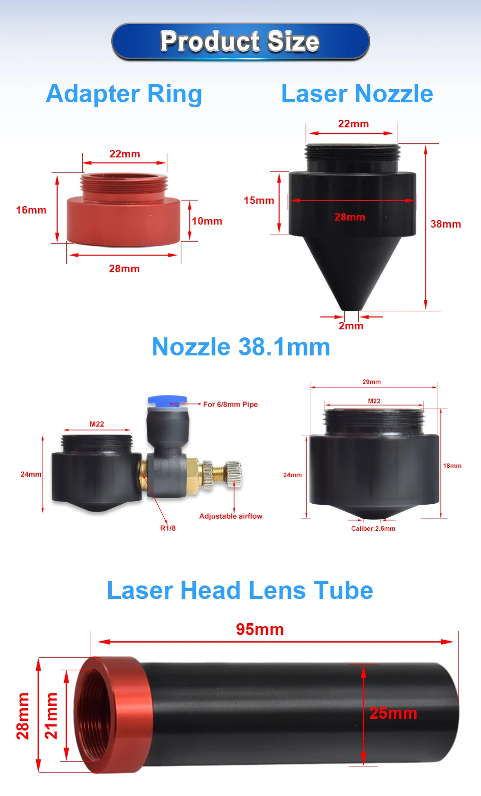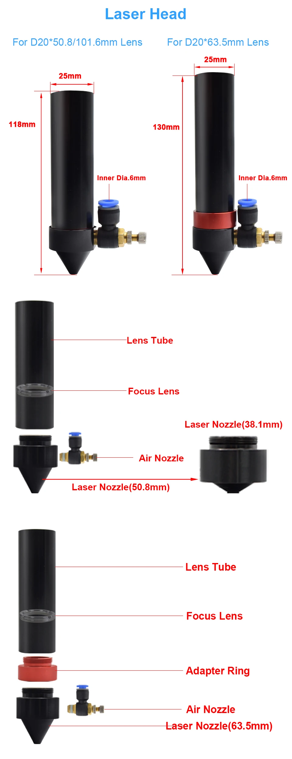 CO2 фотолампа + Воздушная Форсунка внешний диаметр 25 мм для объектива диам.20 FL 50,863,5101,6 мм для лазерной режущей машины CO2