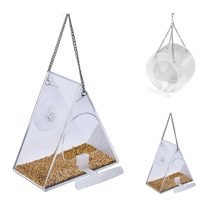 Треугольная прозрачная кормушка для птиц, кормушка из акрила и мета...