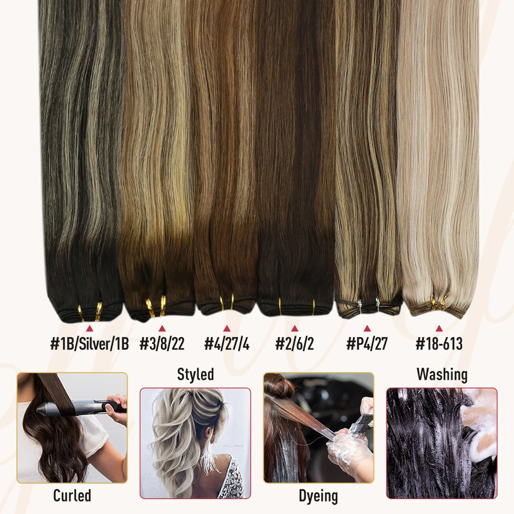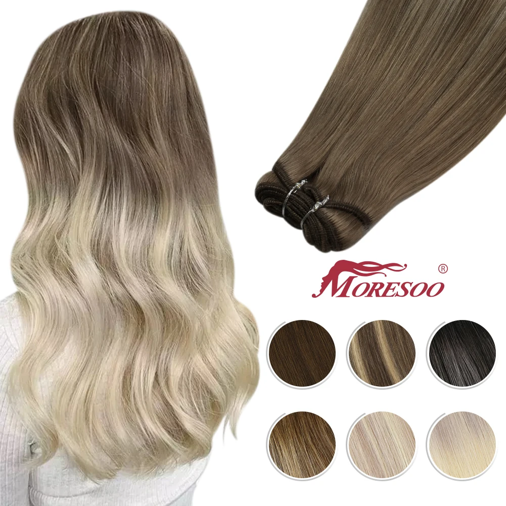 Пряди Moresoo для наращивания, человеческие волосы, Переплетенные в двойную прядь, машинка для наращивания, волосы без повреждений, балаяж, прямые волосы для женщин