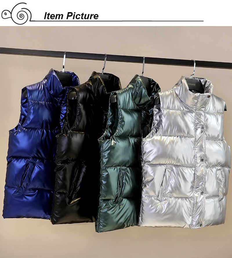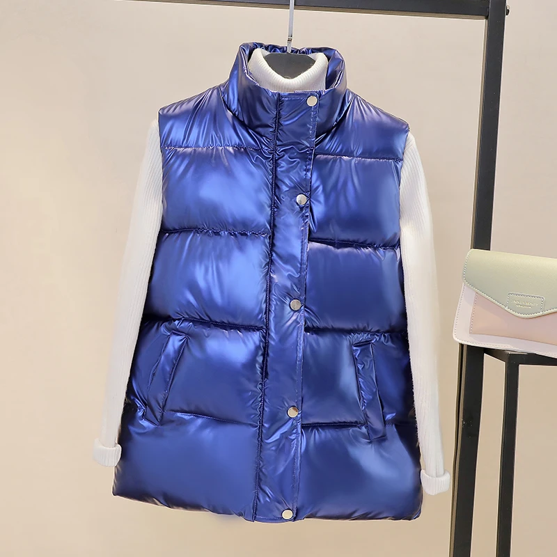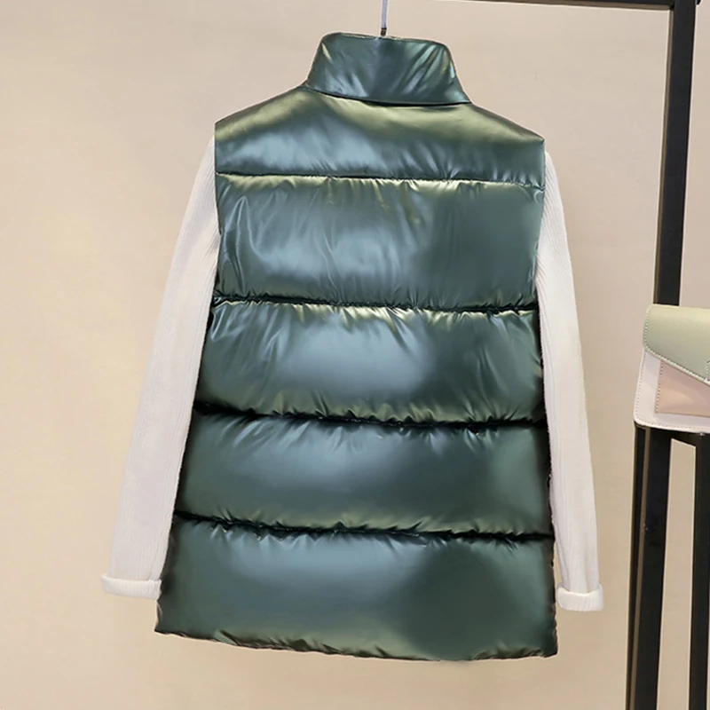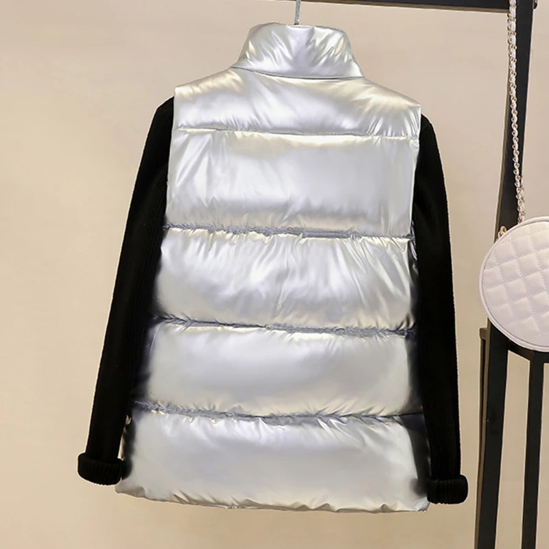 Жилет женский осенне-зимний, блестящий, с воротником-стойкой, на молнии