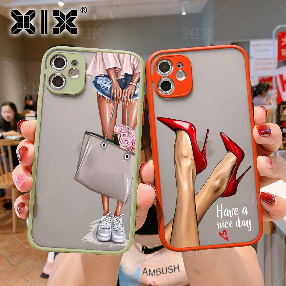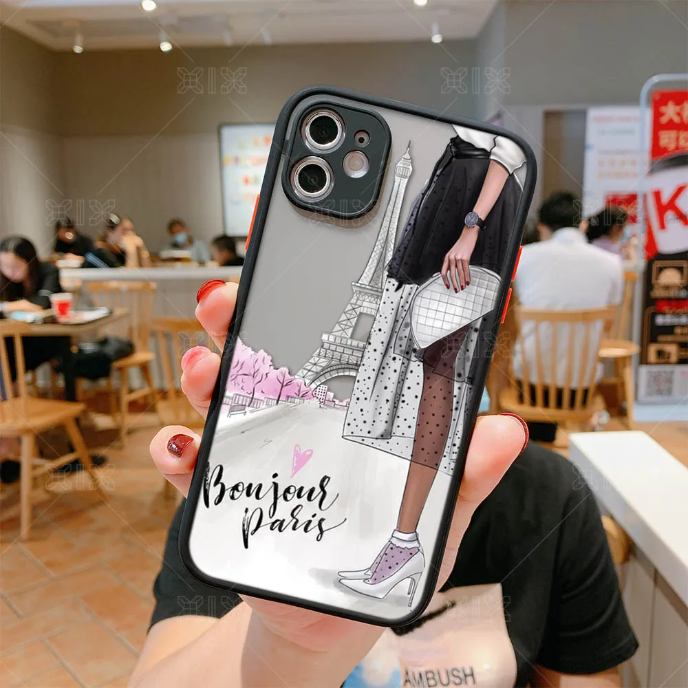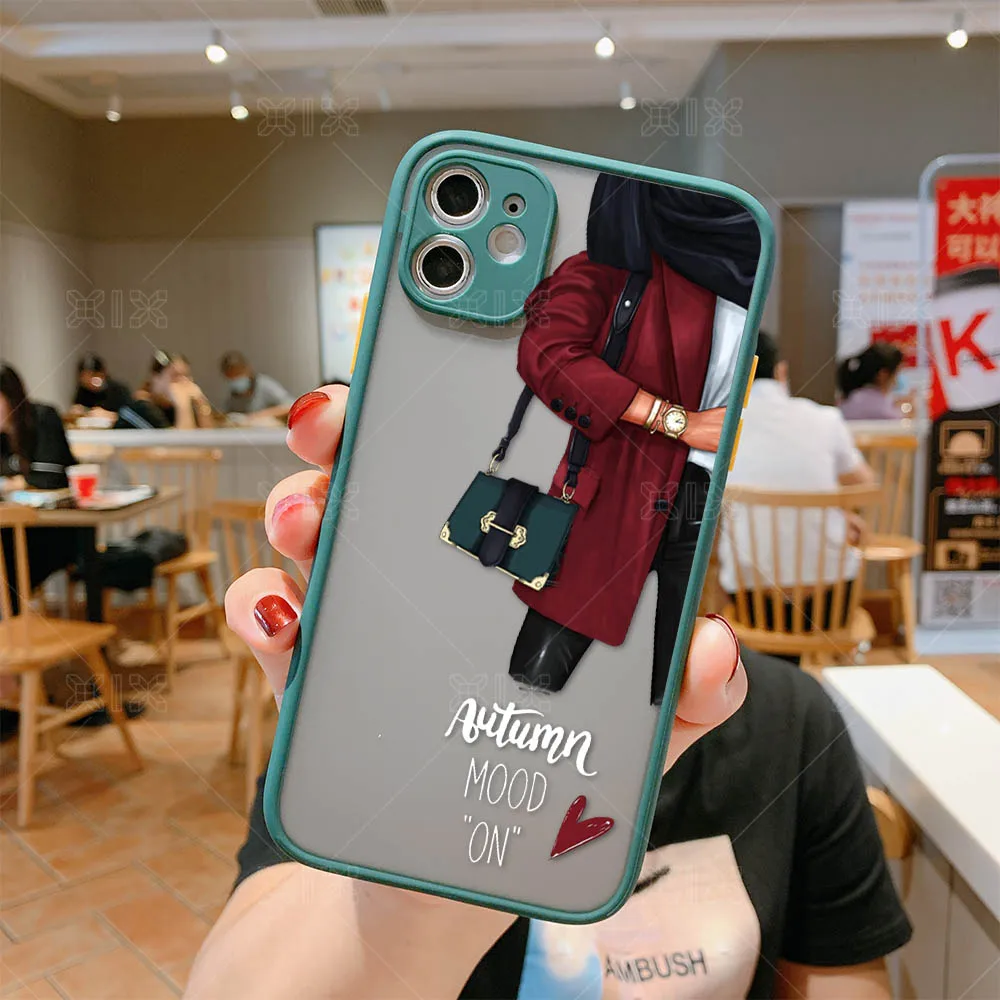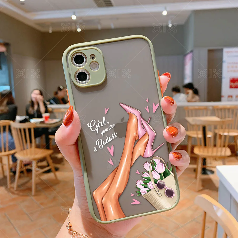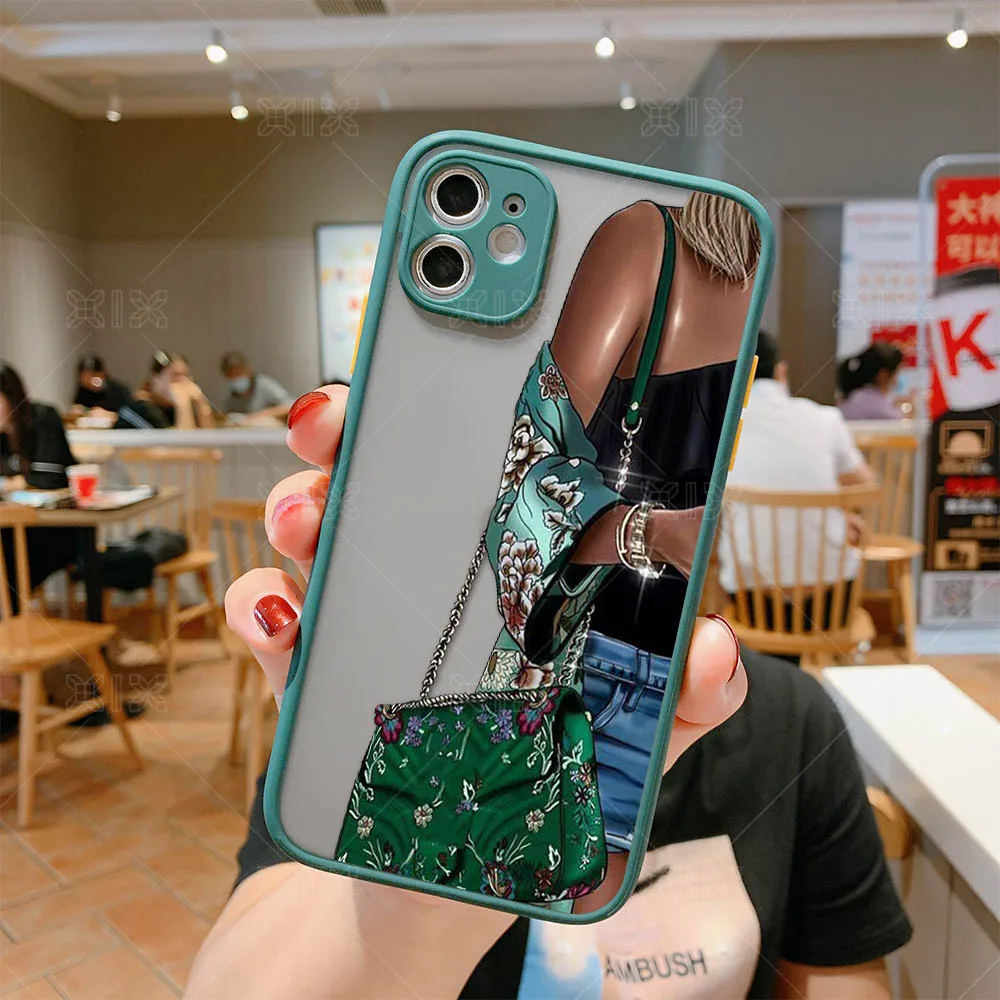 Модный чехол для iPhone 11, Модный чехол для девочек для iPhone 12 Pro Max SE 2020 7 8 Plus X XS Max XR, мягкий бампер, прозрачная матовая задняя крышка из поликарбоната
