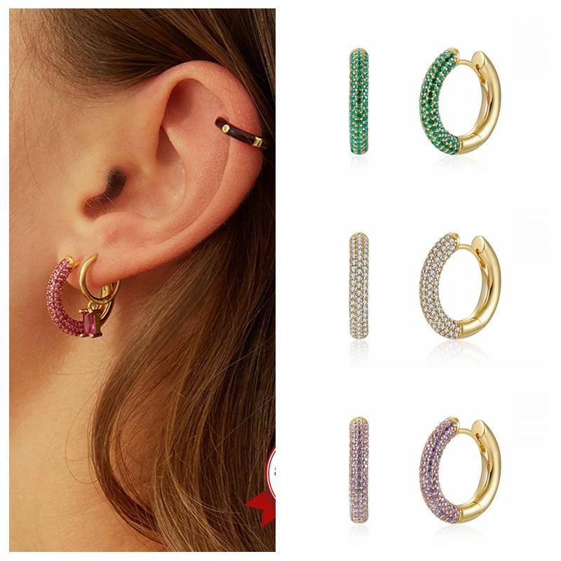 1 шт. очаровательные красочные циркониевые квадратные серьги-кольца...