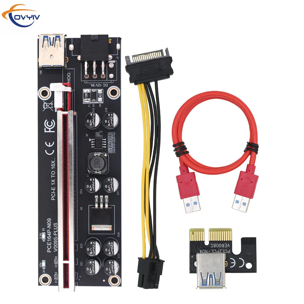 10 шт. COVYIV GPU PCIEPCI-E 009S плюс карта PCI E X16 PCI Express 6Pin SATA 1X 16X USB3.0 удлинитель для головок светодиодный горнодобывающая промышленность в наличии