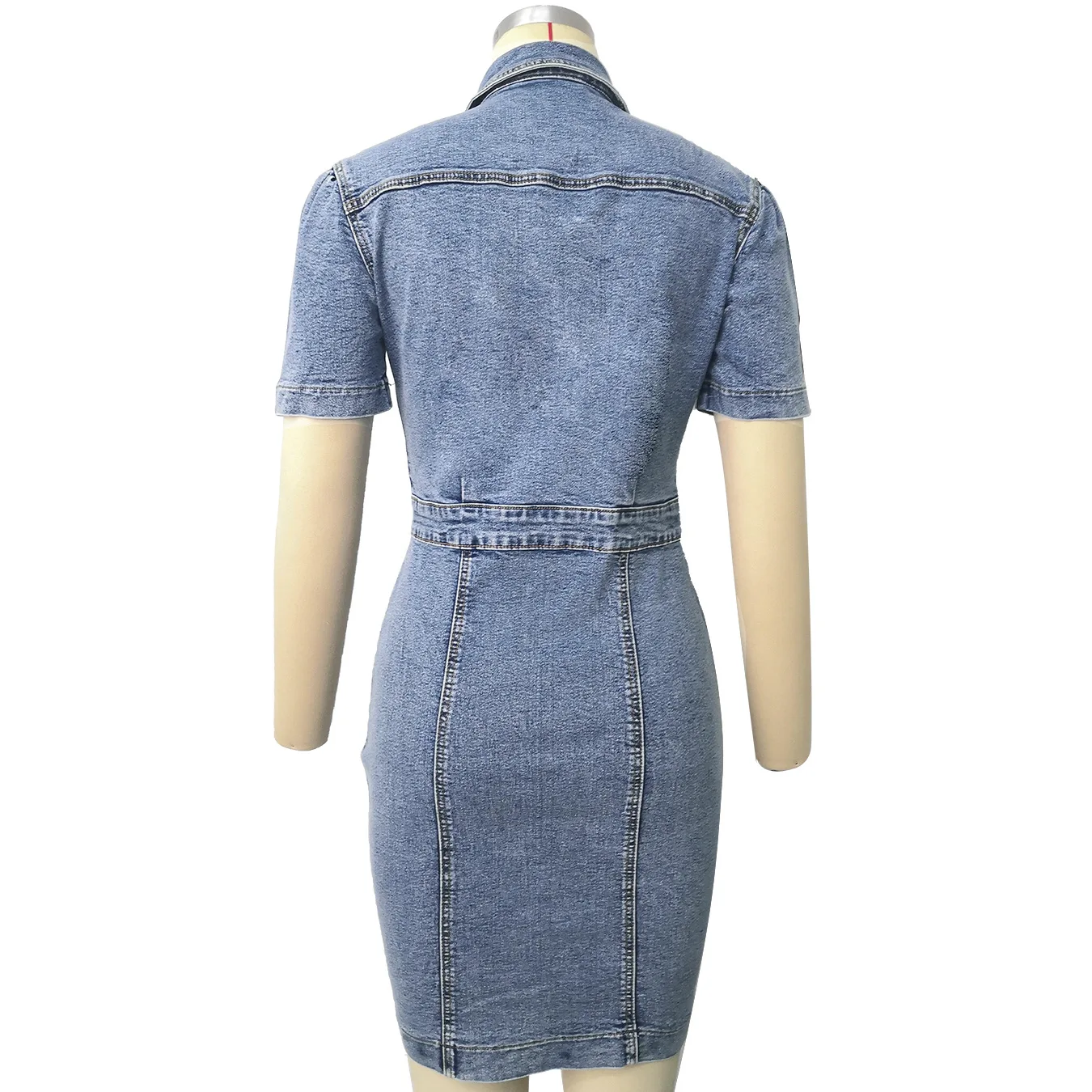Уличная одежда; Однотонное повседневное Джинсовое платье с короткими рукавами; Модное приталенное платье