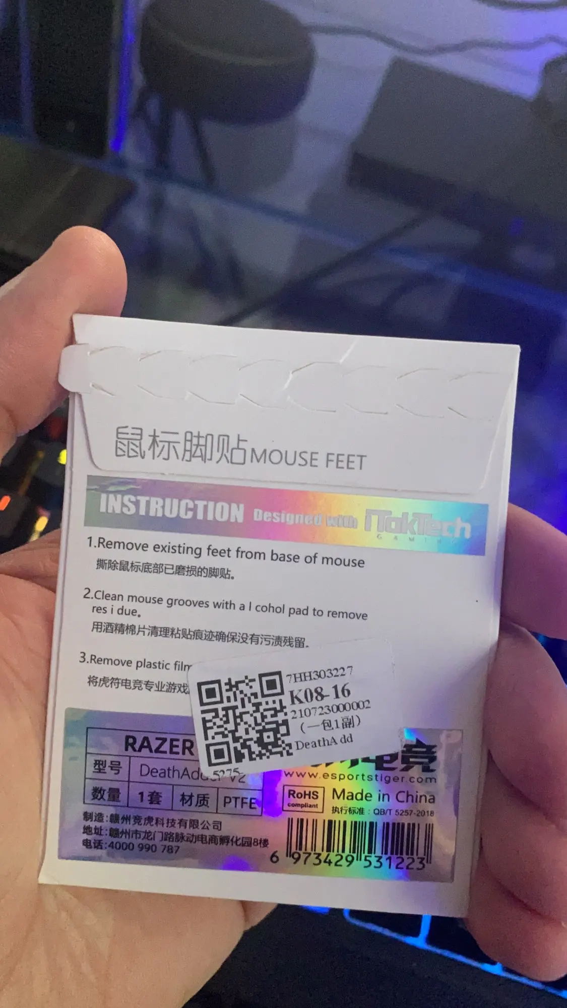 Этот продукт является заменяемой ногой мыши. После удаления оригинальной наклейки для ног мыши очистите нижнюю часть корпуса спиртовым хлопком, который прилагается в посылка, а затем вставьте Новые ножки мыши.