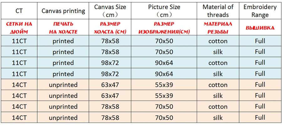Советы 1:Фактический размер изделия может варьироваться от 1 до 3 см от размера холста. Это нормально.