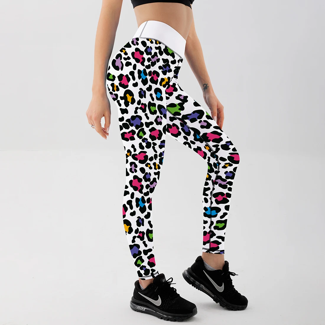 Женские леггинсы с ярким принтом, эластичные спортивные штаны с выс...