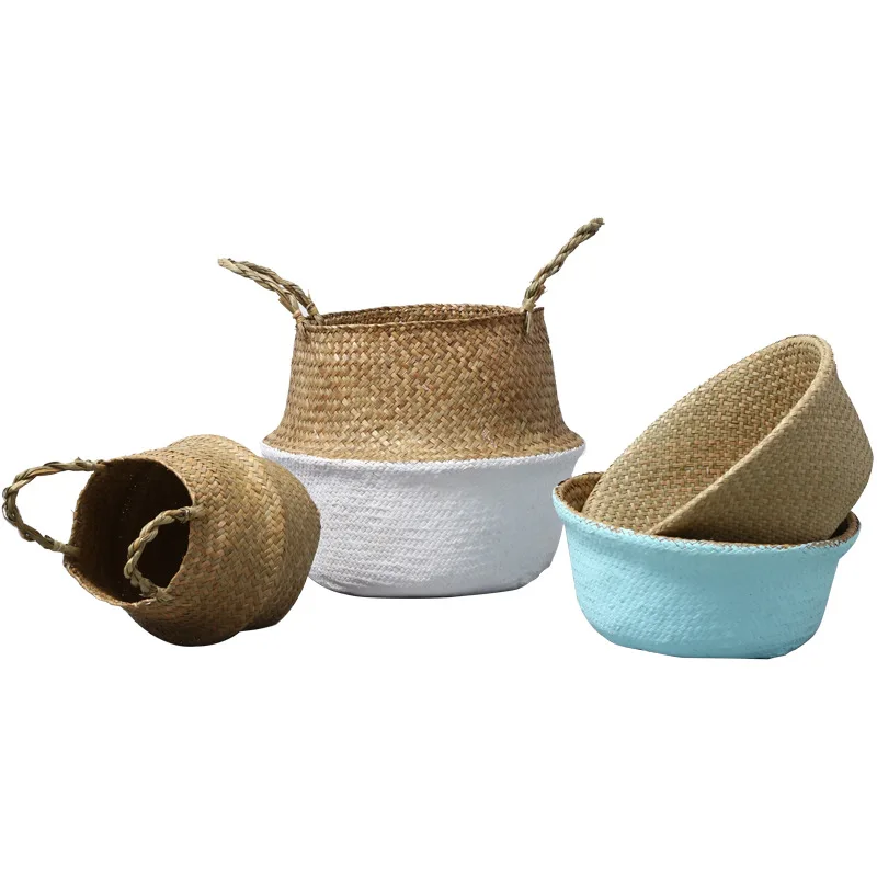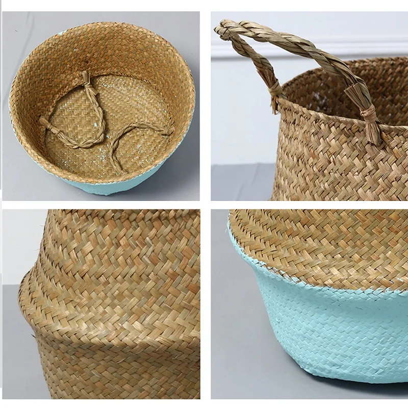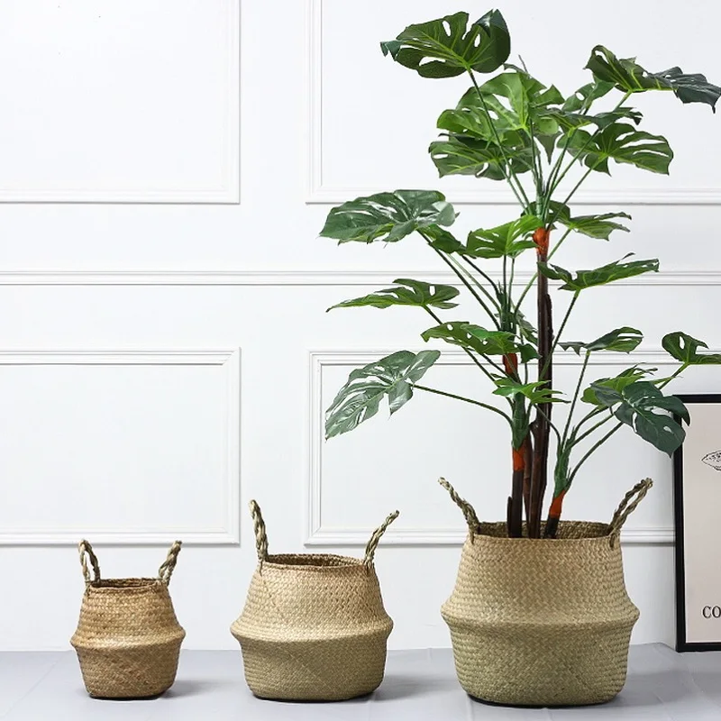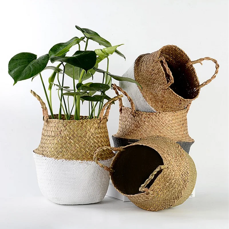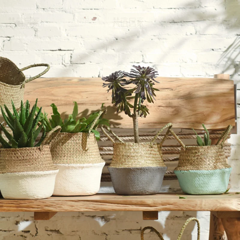 Новая плетеная корзина в скандинавском стиле, корзины для хранения ручной работы из бамбука, морской травы, садовый цветочный горшок, корзина для белья, контейнер, держатели для игрушек