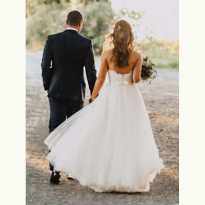 Женское свадебное платье без рукавов, белое ТРАПЕЦИЕВИДНОЕ ПЛАТЬЕ из фатина с открытой спиной, в полную длину, для лета, 2020
