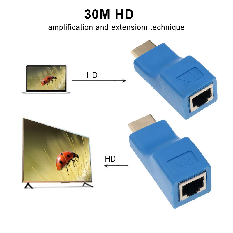 1 пара RJ45 4K HDMI-совместимый удлинитель до 30 м по CAT5e Cat6 сетевой Ethernet LAN для HDTV HDPC DVD PS3 STB