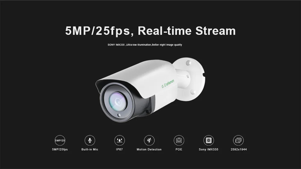 Наружная и внутренняя ip-камера имеет металлический корпус и корпус с классом водонепроницаемости ip67. Так что вы можете свободно устанавливать его на открытом воздухе, например, в вашем гараже, на заднем дворе или в любом другом месте. Выдерживает суровые погодные условия, включая дождь, снег, интенсивный холод и тепло.
