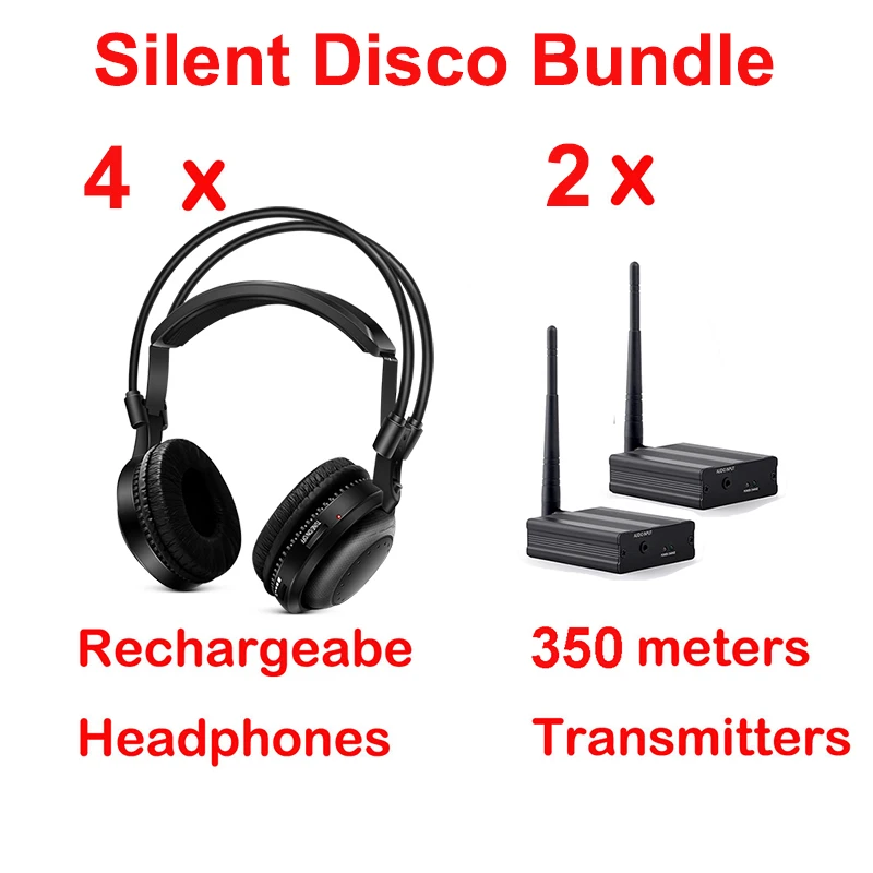 350 м 2 канальный РЧ гарнитуры 4 шт. классические наушники Сайлент диско Беспроводной мониторные наушники для диджеев на обруче для крепления на голове, встреча клуба