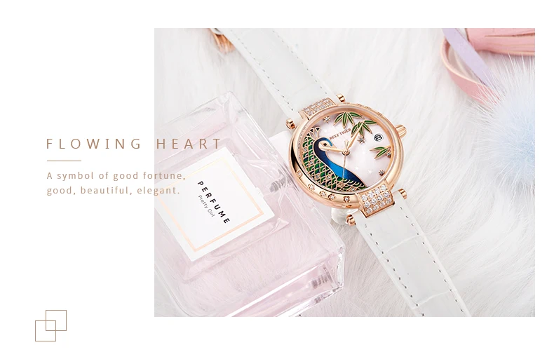 Женские повседневные часы на кожаном ремешке, с автоматическим реме...