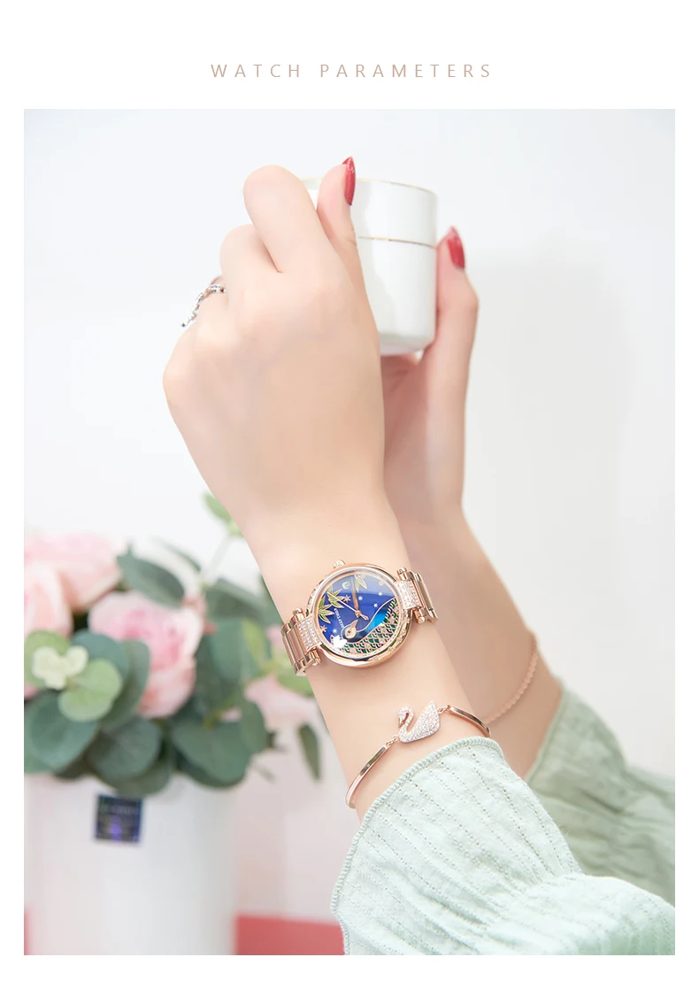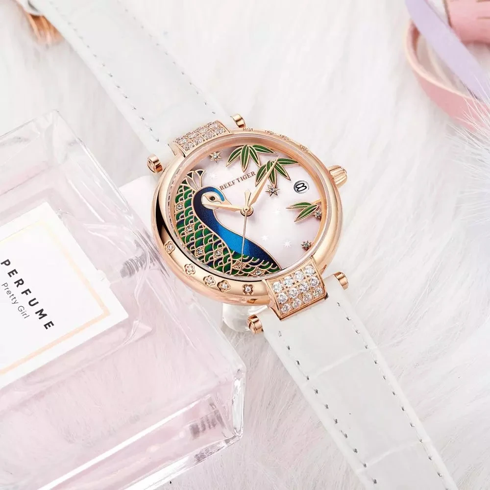 Женские часы с браслетом из розового золота, с автоматической датой