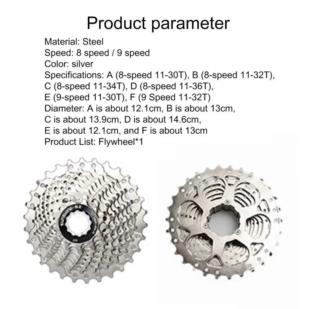 Скоростной бесколесный полый резной дизайн высокая прочность стальной велосипедный Кассетный Маховик для наружного велоспорта Описание: Сильное сопротивление окислению затрудняет ржавчину и имеет длительный срок службы. Он принимает вырезанный дизайн, уменьшает вес и не накладывает лишних расходов на велосипед. Велосипедный маховик изготовлен из высококачественного стального материала, прочный и антикоррозийный. Этот продукт имеет 6 различных стилей для вас на выбор. 8 скоростей совместимы с двумя основными системами, такими как набор SHIMANO 8-Speed EF500, EF510, EF65, для Acera M310, M360, M410; И для SRAM kit 8-speed X3, x4, X5, X7. 9 скорость совместима с двумя основными системами, такими как Shimano's kit 9-скоростной M370, M390, M430, м2000, M4000, DEORE M530; И SRAM kit 9-скоростной X5, X7. Велосипедный маховик подходит для занятий спортом на открытом воздухе, велосипедов, горных велосипедов и т. д. Наименование товара: велосипедный маховик Материал: сталь Спецификация: стиль A: 8 скоростей (11T-30T), стиль B: 8 скоростей (11T-32T), стиль C: 8 скоростей (11T-34T), стиль D: 8 скоростей (11T-36T), стиль E: 9 скоростей (11T-30T), стиль F: 9 скоростей (11T-32T) Информация о размере: Стиль в Диаметр: 12,1 см/4,76 "(прибл.) Стиль B Диаметр: 13 см/5,12 "(прибл.) Стиль C диаметр: 13,9 см/5,47 "(прибл.) Стиль D диаметр: 14,6 см/5,74 "(прибл.) Стиль E диаметр: 12,1 см/4,76 "(прибл.) Стиль F Диаметр: 13 см/5,12 "(прибл.) Примечания: Благодаря светильник и экрана Цвет Товара может быть s светильник ly отличается из-за характеристик монитора компьютера. Возможны незначительные отклонения в размерах из-за различных измерений вручную. Посылка включает в себя: 1 х велосипедный маховик