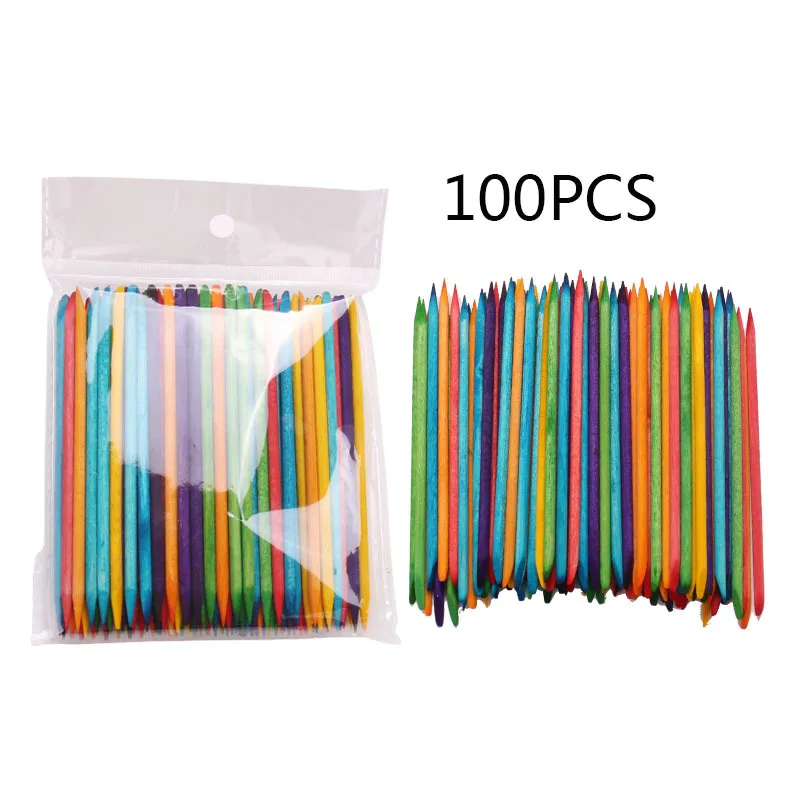 100 шт. разноцветные палочки для ногтей из оранжевого дерева, двухс...