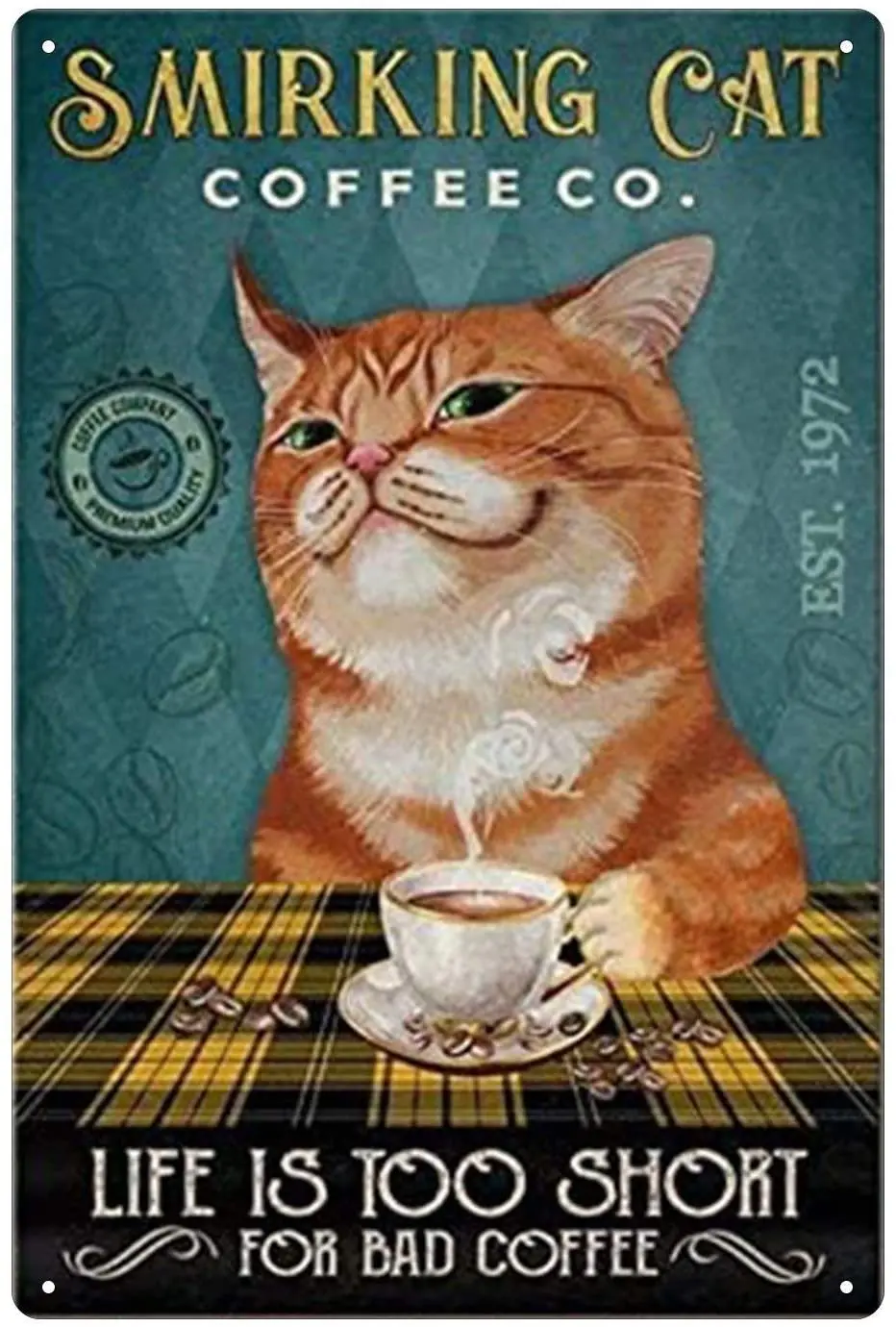 Металлический жестяной знак Кошка Китти, настенный знак с кошками, забавный металлический жестяной знак, домашний винтажный художественный декор, железная живопись