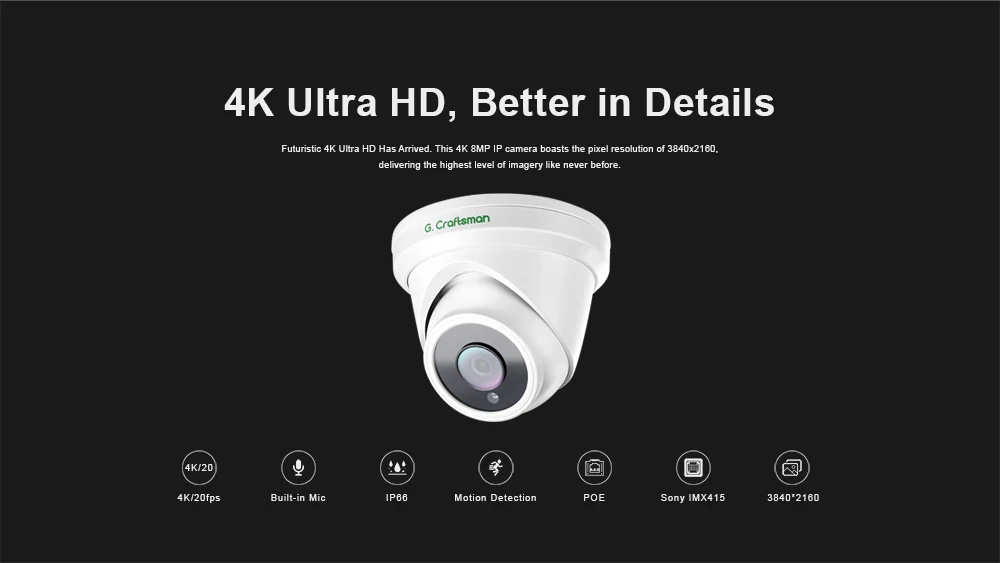 Новейший датчик SONY IMX415 приносит вам максимальный опыт 4KИ захватывает больше деталей, особенно в низкий светильник