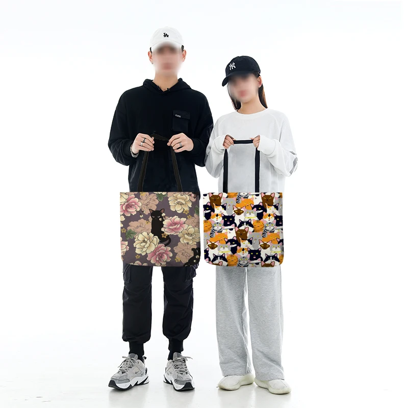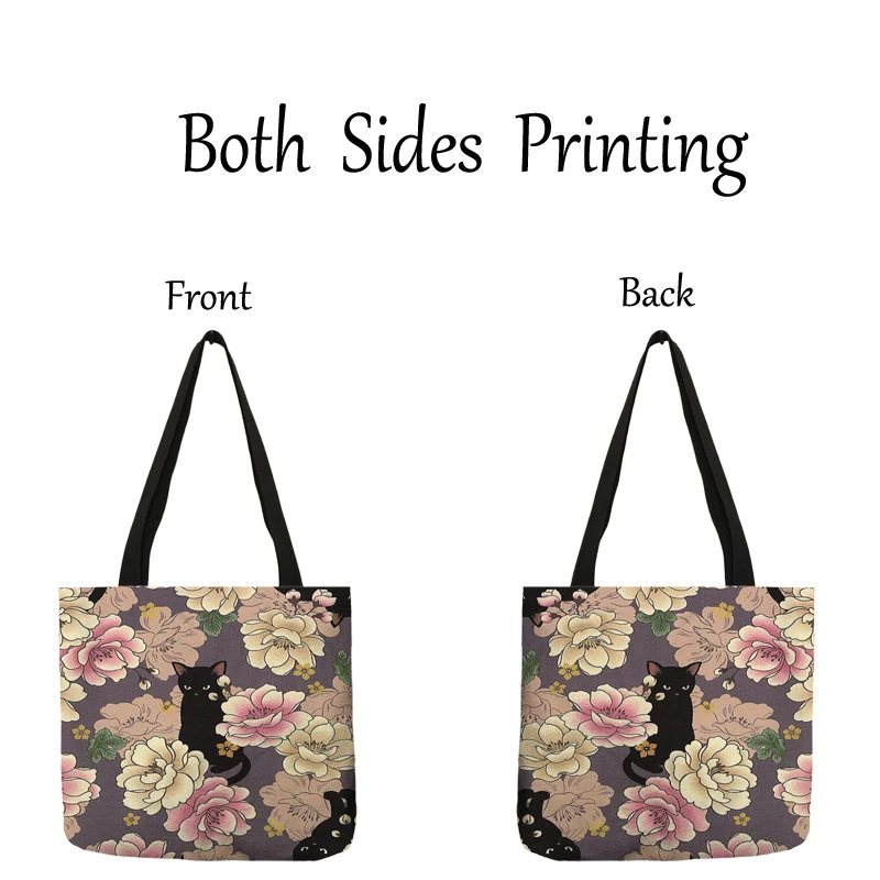 Милая женская сумка для покупок с мультяшным цветочным принтом кота, льняная тканевая сумка на плечо, экологически чистая сумка для хранения, многоразовые складные тоуты для продуктов