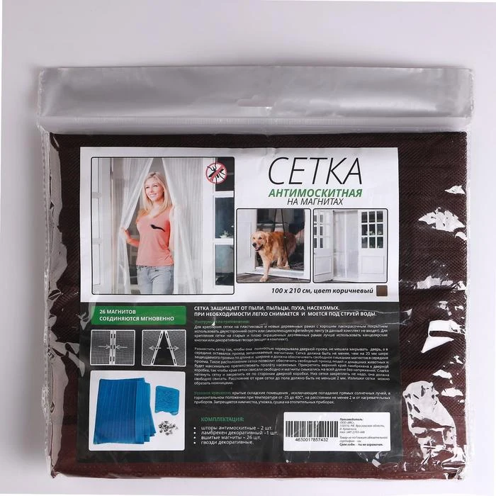 Сетка антимоскитная для дверей, 100 210 см, на магнитах, цвет коричневый 1389831