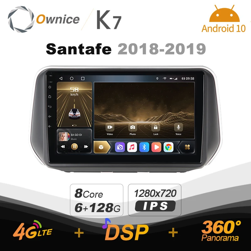 Ownice K7 Android 10.0 Car Radio Stereo for Hyundai Santafe 2018 - 2019 Support Front camera 4G LTE 360 2din Auto Audio 6G+128G