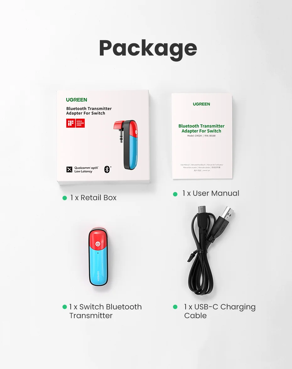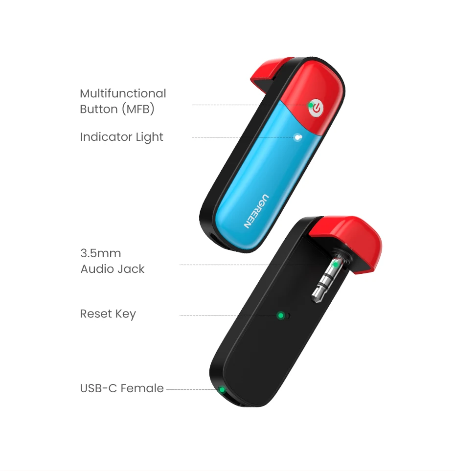 Bluetooth 5,0 передатчик UGREEN, 3,5 мм, дизайн аудио-адаптера для беспроводного передатчика Nintendo Switch APTX LL