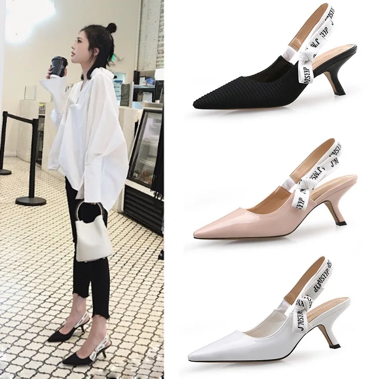 ZHENZHOU/стильные женские туфли-лодочки и сандалии с бантиком; Модные женские туфли-лодочки с острым носком на каблуке с котами и открытой пяткой