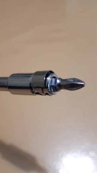 Крепление бит не шариком, а собой внутри. Держит слишком сильно, пришлось извлекать плоскогубцами. Свою функцию выполняет, но на картинке лучше, чем в живую, к сожалению сфоткать не могу - лежит в машине в наборе.