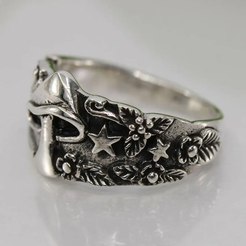 Винтажное кольцо с рисунком гриба в стиле ретро панк цвет: старое серебро палец кольца для мужчин и женщин хип-хоп ювелирные кольца