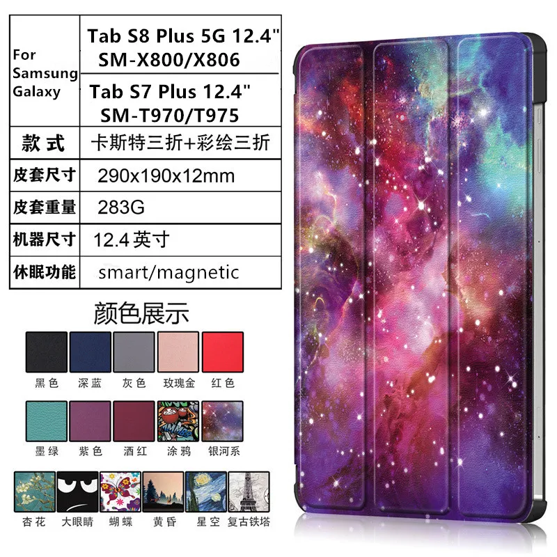 Магнитный смарт-чехол Tab S8 plus 2022 X800 A8 X200 для Samsung Galaxy Tab S7 plus 12,4 дюйма, T970, подставка для планшета, чехол для tab s7 11 T870