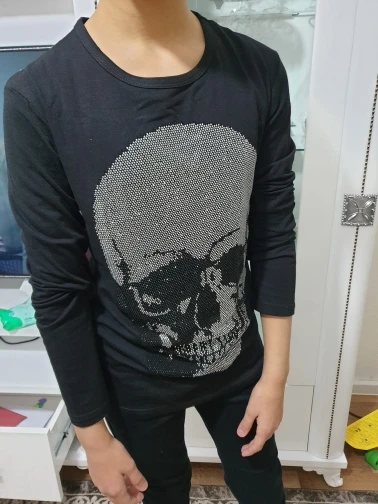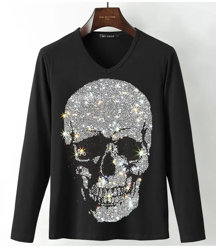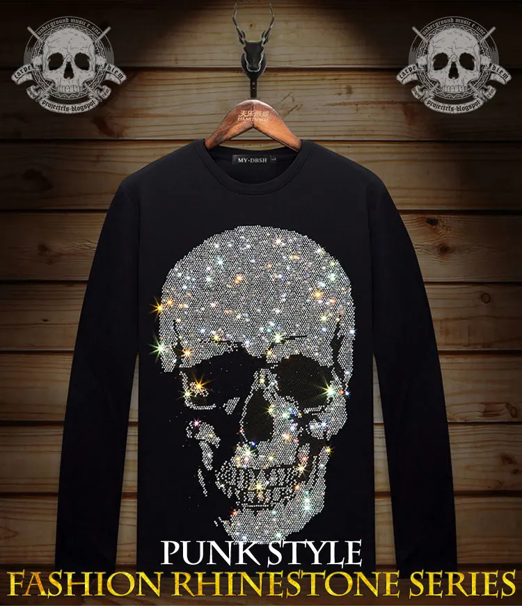 Размера плюс череп стразы футболки мужские летние топы футболки с круглым вырезом приталенные футболки высокое качество мужской мотоцикл футболка в стиле панк-рок
