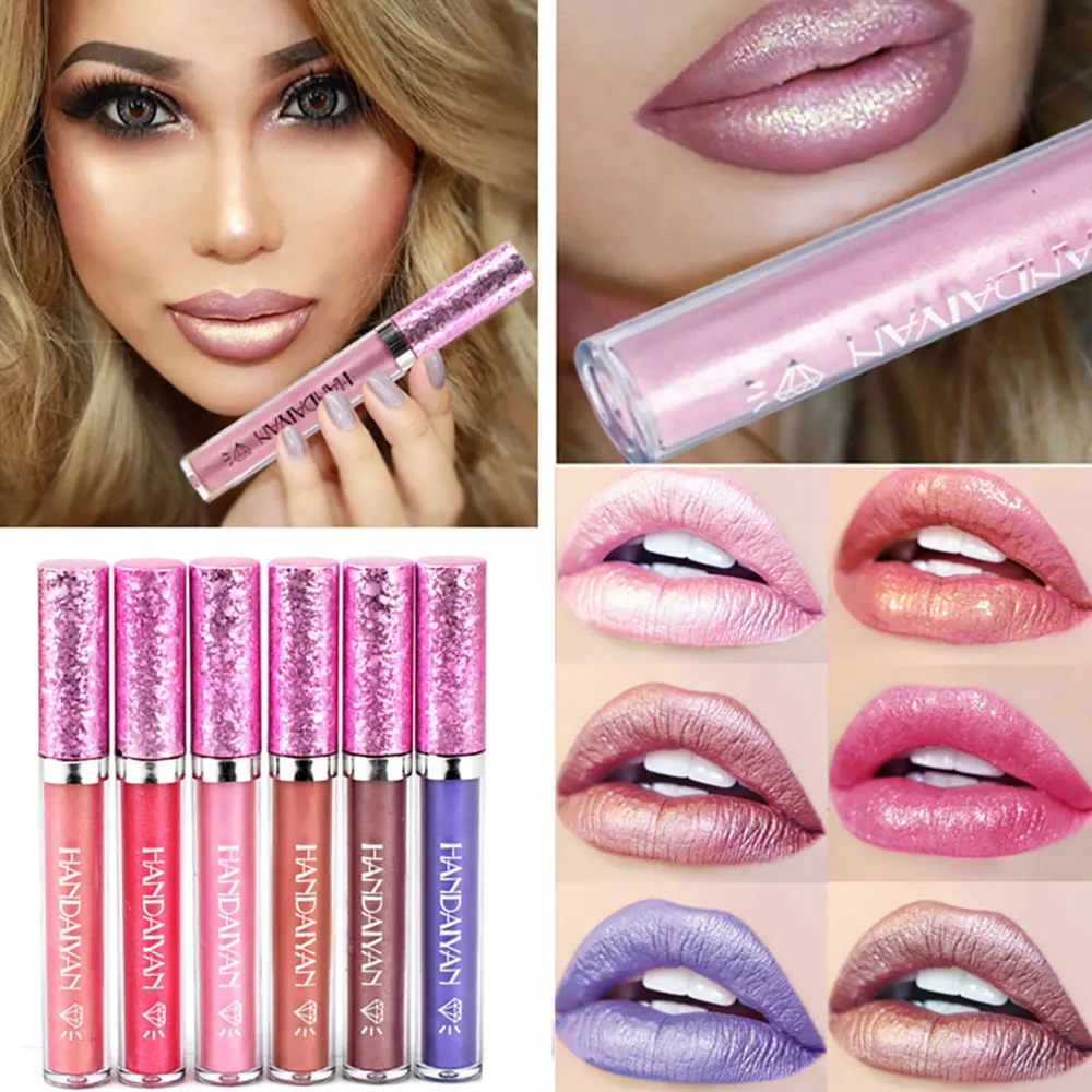 HANDAIYAN Алмазный Блеск для губ 6 цветов макияж блестящий металлик...