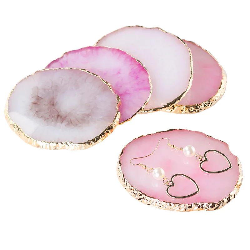 Витрина для ювелирных украшений, Круглый Агат из смолы, окрашенный камень, палитра для цепочек, колец, серег, держатель для ювелирных украшений, декоративная полка-Органайзер