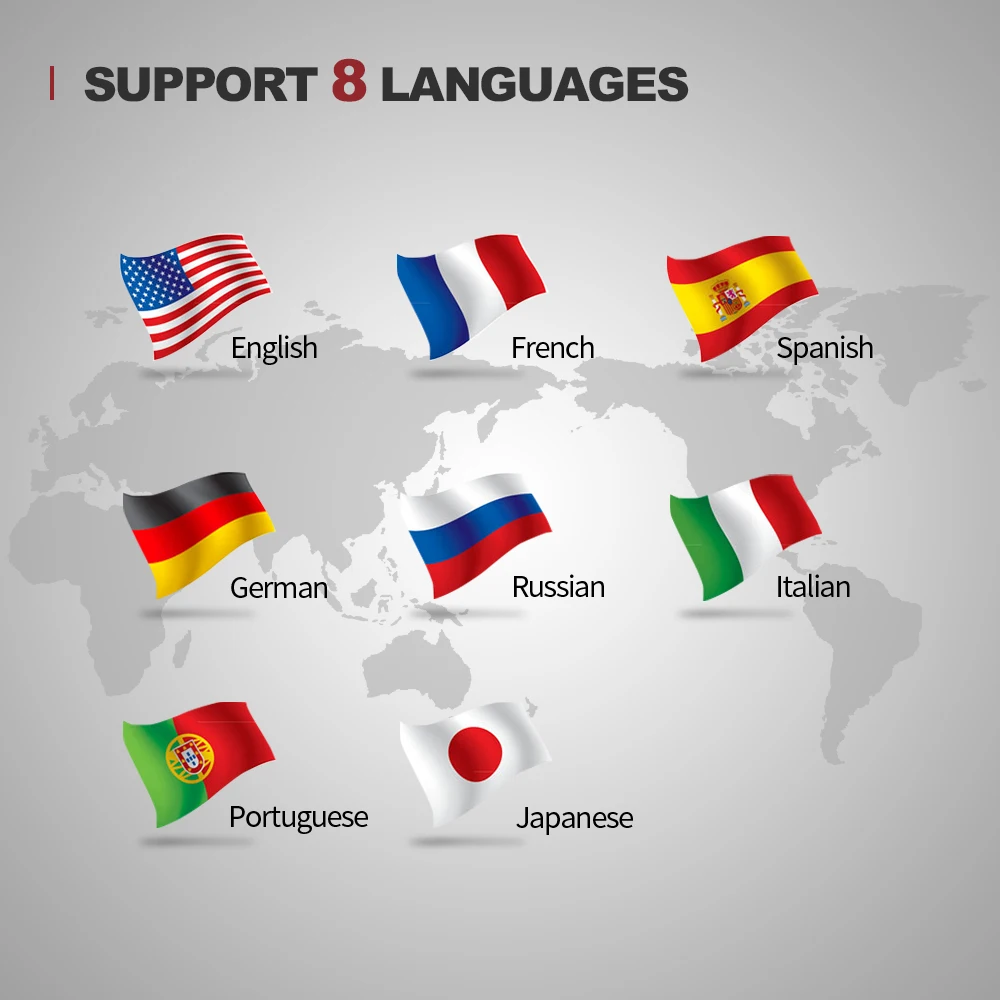 Китайский, английский, итальянский, немецкий, японский, русский, французский, испанский, португальский