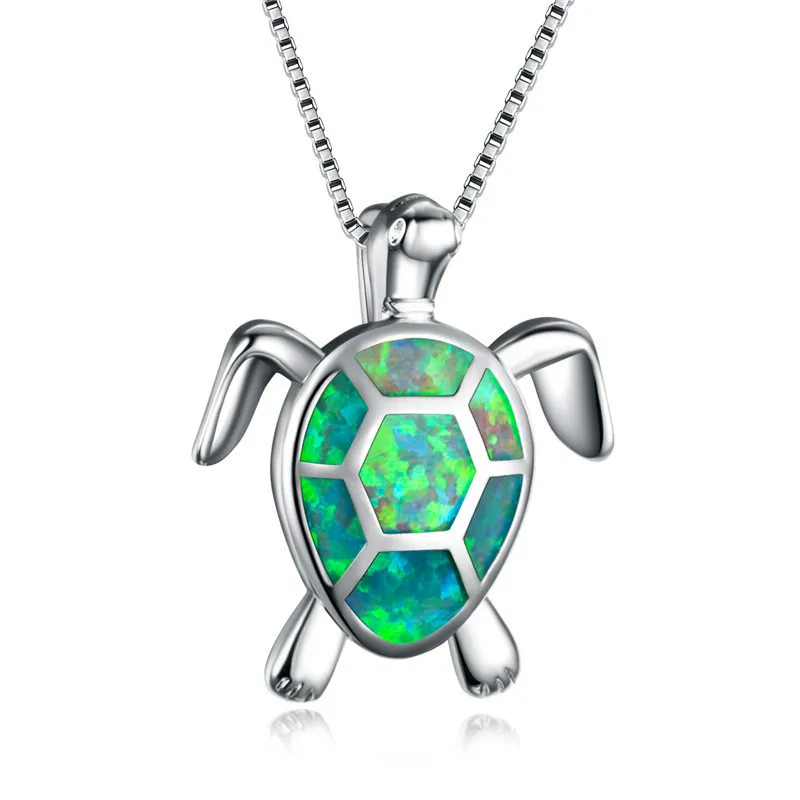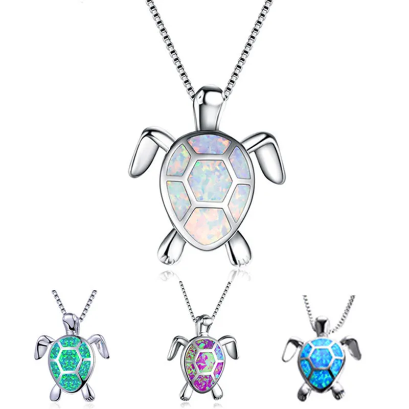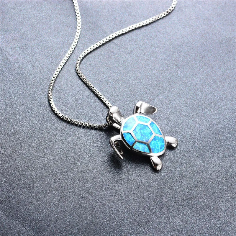 Ожерелье с маленькой черепахой из белого, синего, зеленого опала, милое ожерелье с подвеской в виде морской черепахи для женщин, свадебная бижутерия, винтажное ожерелье-цепочка