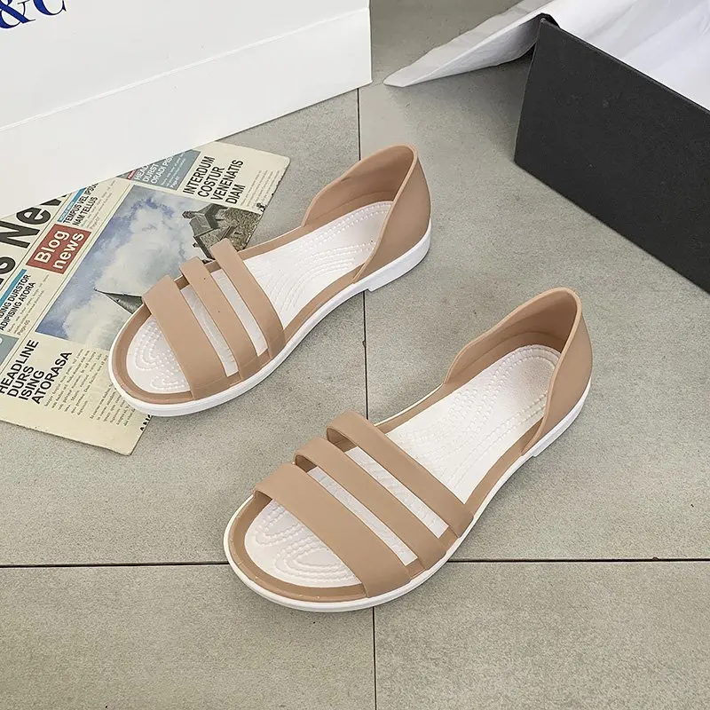 Женские сандалии на плоской подошве, летние шлепанцы с открытым носком, 2021, повседневные пляжные уличные женские туфли из ПВХ, шлепанцы яркого цвета