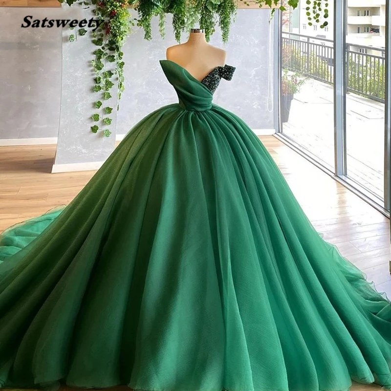 Великолепное зеленое бальное платье, вечерние платья с V-образным вырезом и открытыми плечами, вечерние платья с длинным шлейфом, официальные Выпускные платья