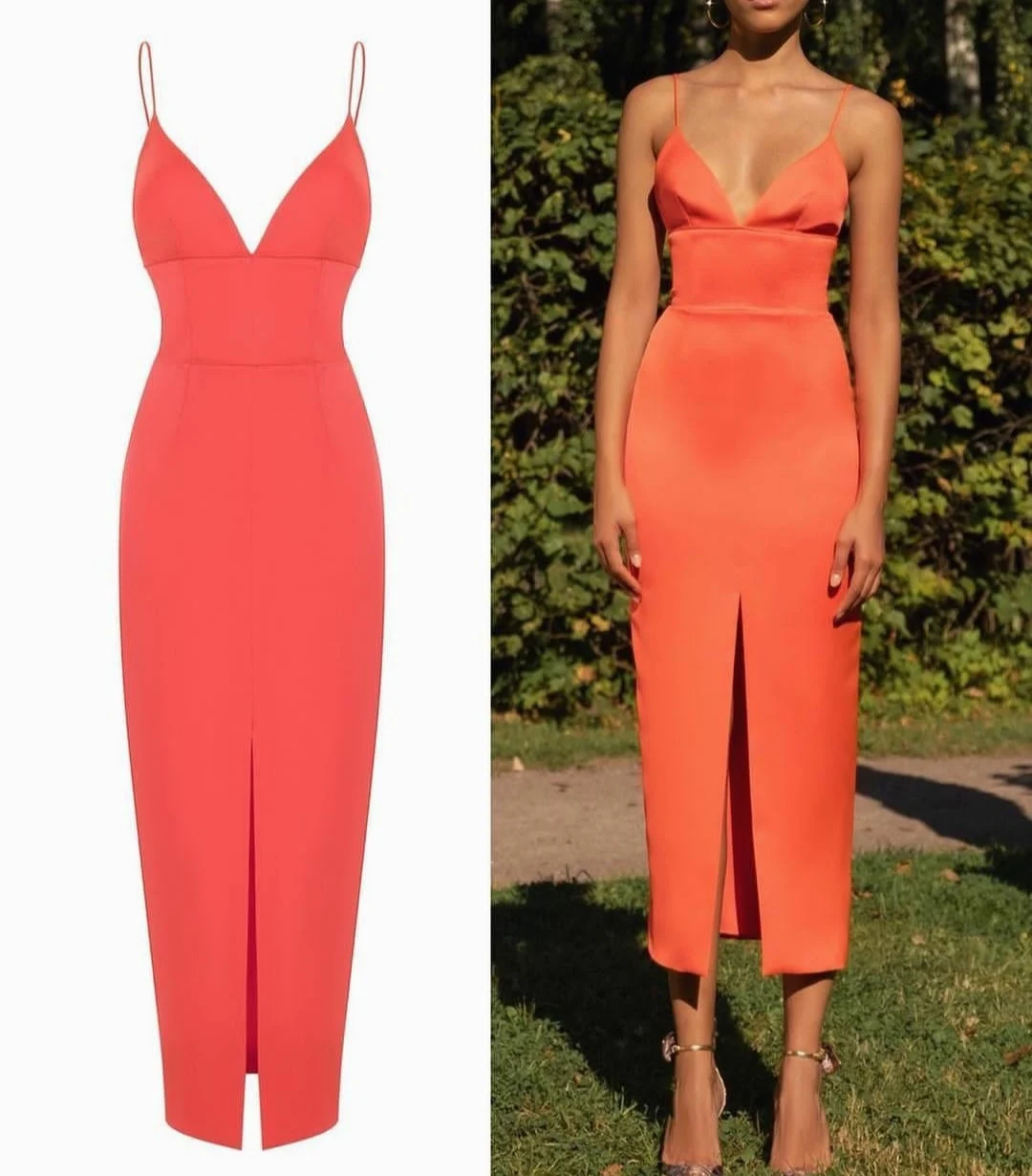 Длинное атласное платье-Русалка с V-образным вырезом, ярко-розовое ...