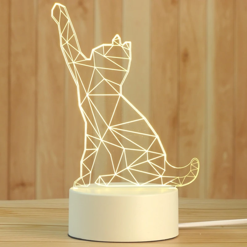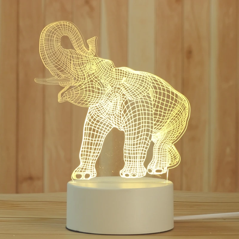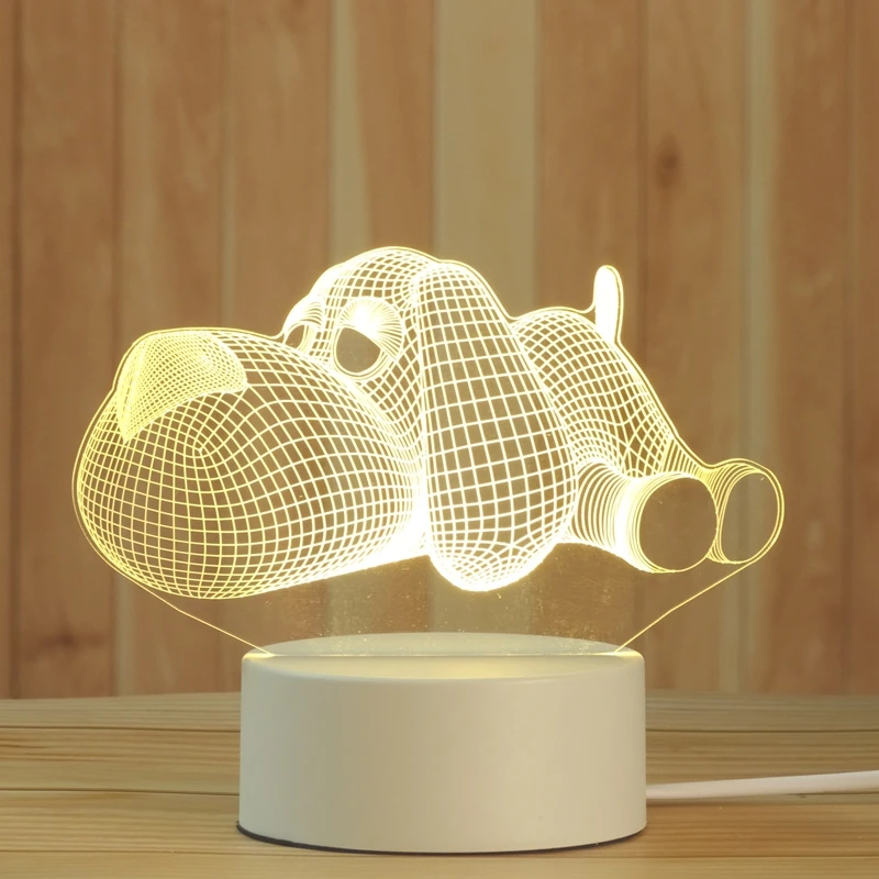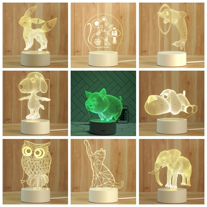 Акриловые милые животные Форма собаки кролик свинка слон 3D светодиодный ночсветильник декоративная настольная лампа подарок домашний декор