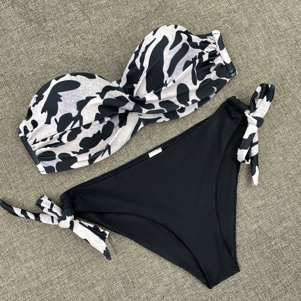 Женский сексуальный купальник с цветочным принтом, бандо с открытой спиной и пуш-ап, комплект бикини, женский купальник с низкой талией, пляжный купальный костюм из двух предметов