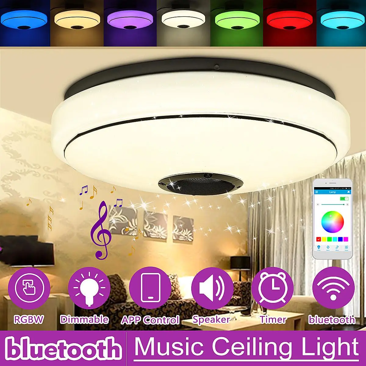 Светодиодный музыкальный потолочный светильник с регулируемой яркостью, 100 Вт, RGBW, с bluetooth-динамиком, мобильным телефоном, управление через приложение, изменение цвета, установка заподлицо, светильник