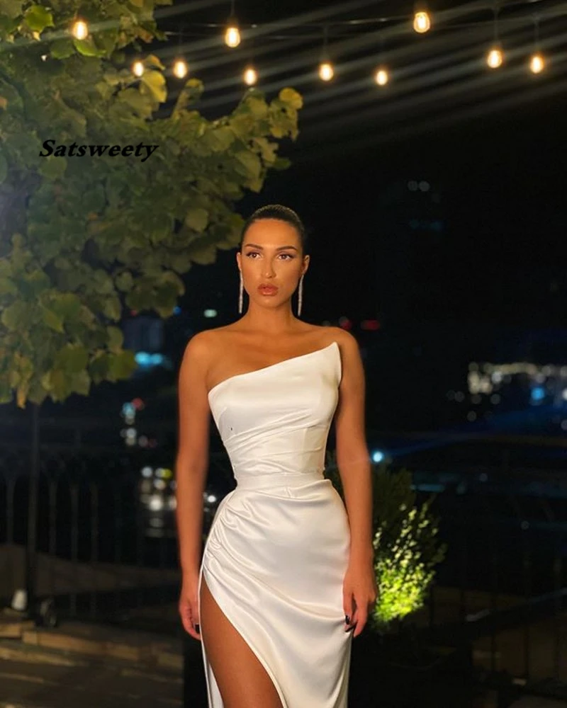 2022 сексуальные белые платья для выпускного вечера с высоким разрезом, атласные вечерние платья для свадебной вечеринки, официальное платье