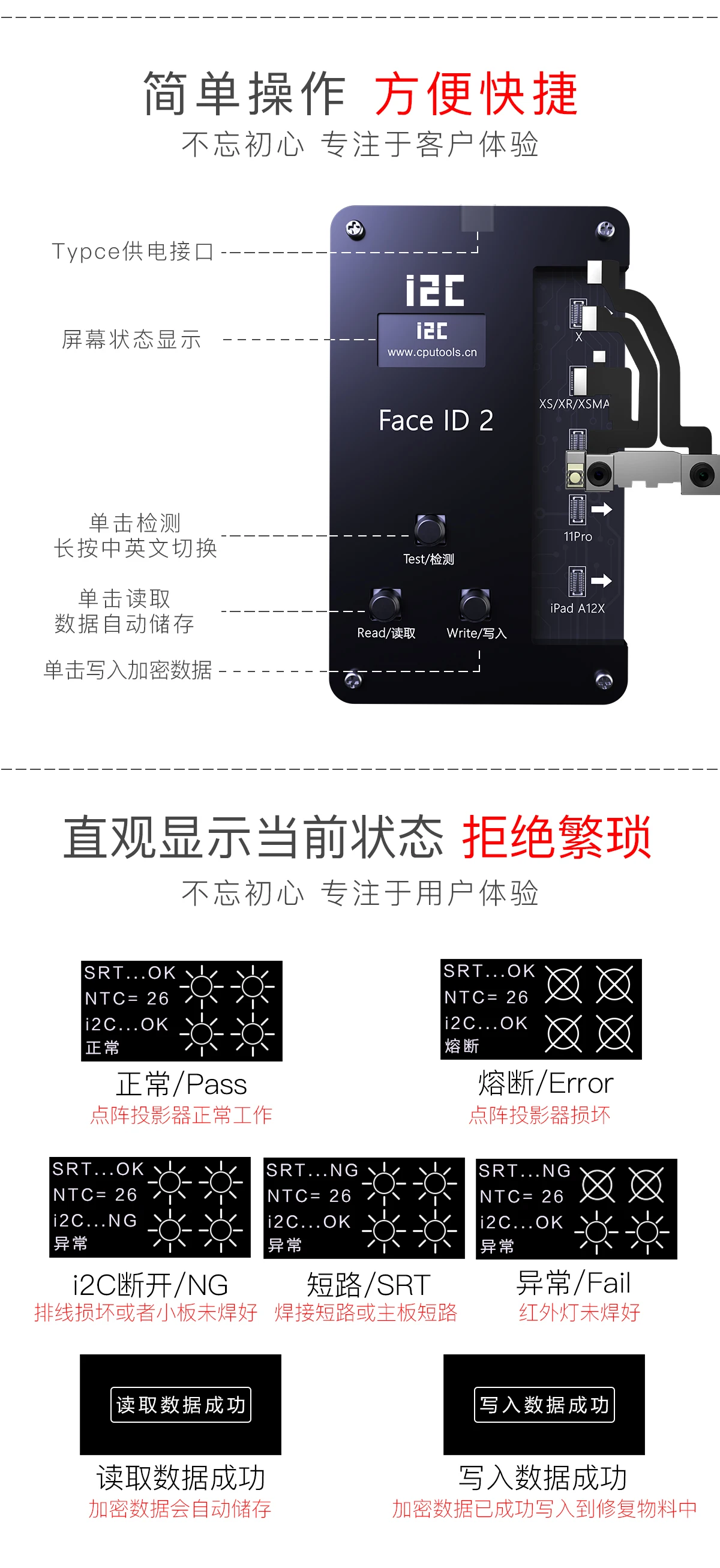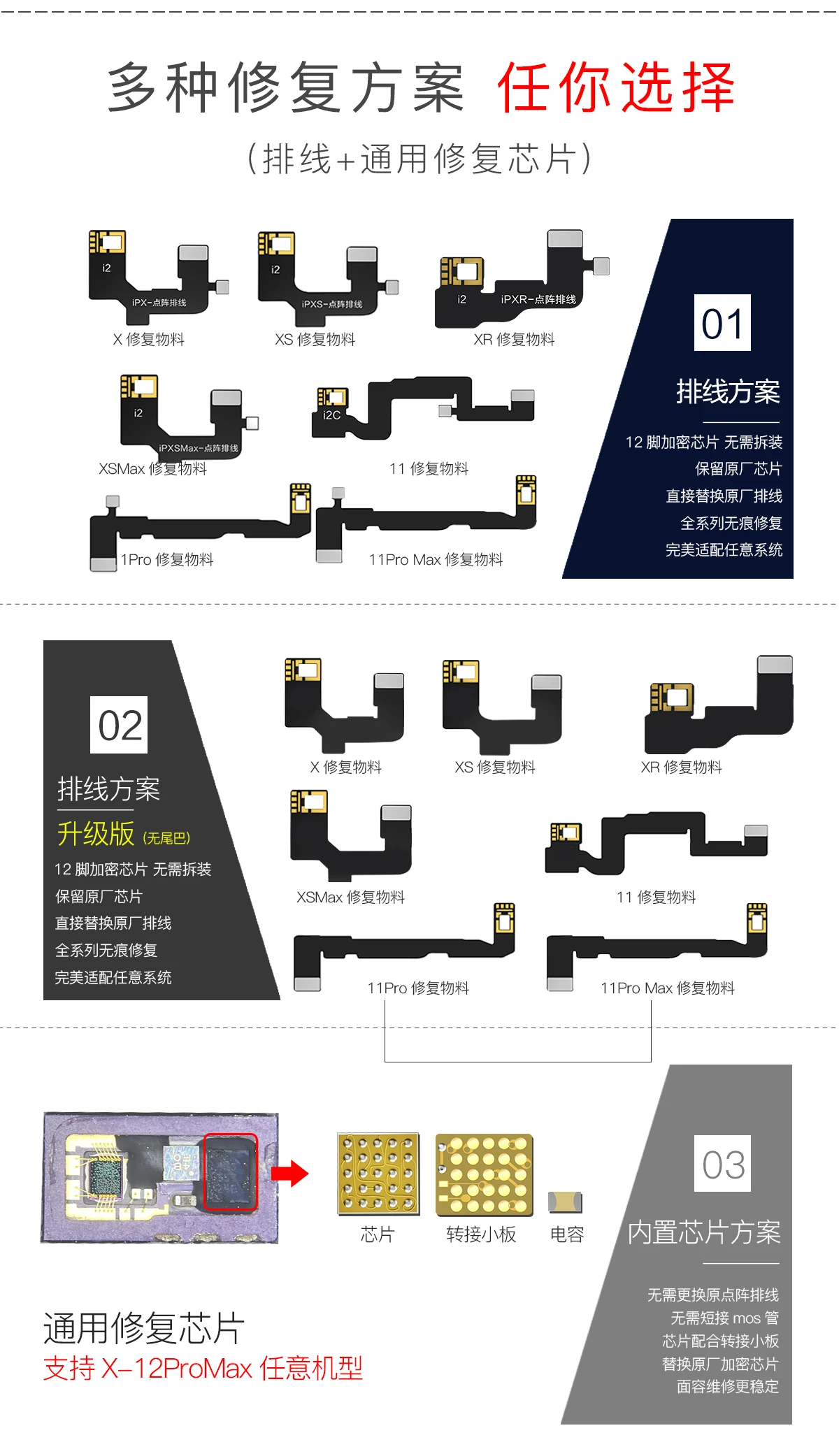 Сетка I2C для ремонта проводов, распознавание лица, поколение 2 V8, особенности лица, программатор IC Chip iPhone X 11 12 PRO MAX