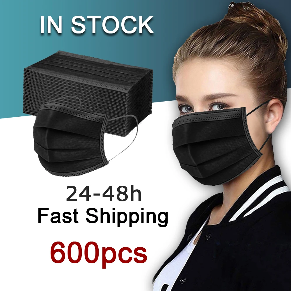 Черные маски, одноразовая Маска для лица для взрослых, 3-слойная за...